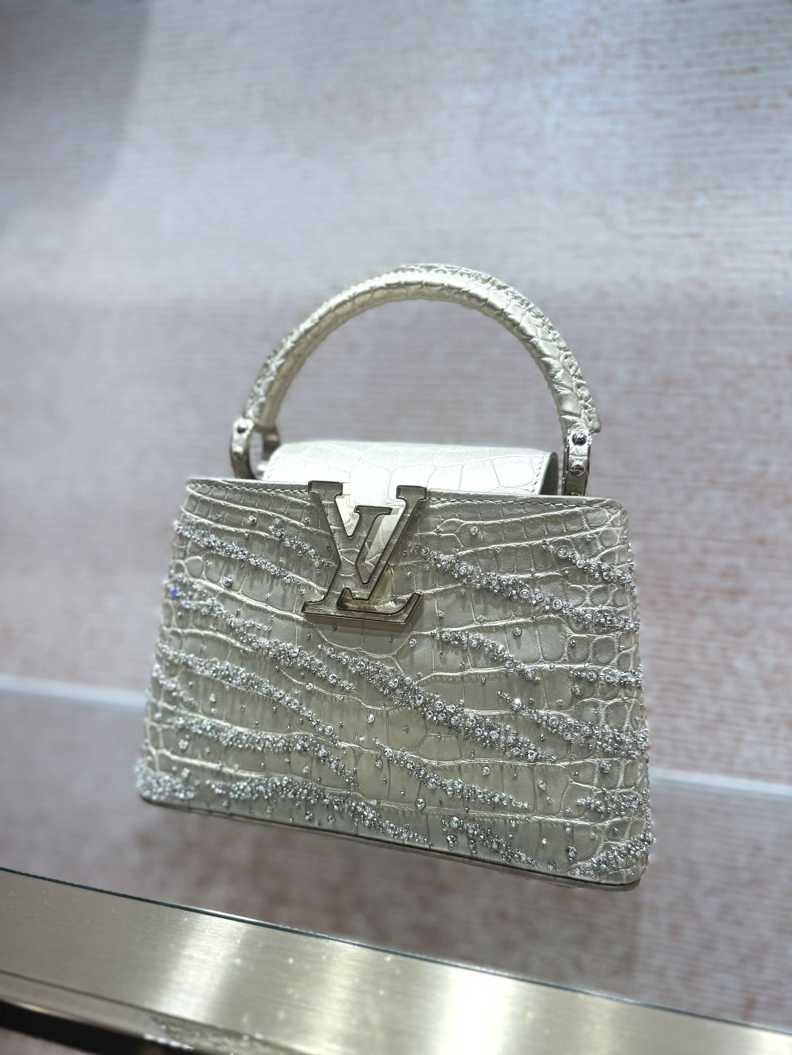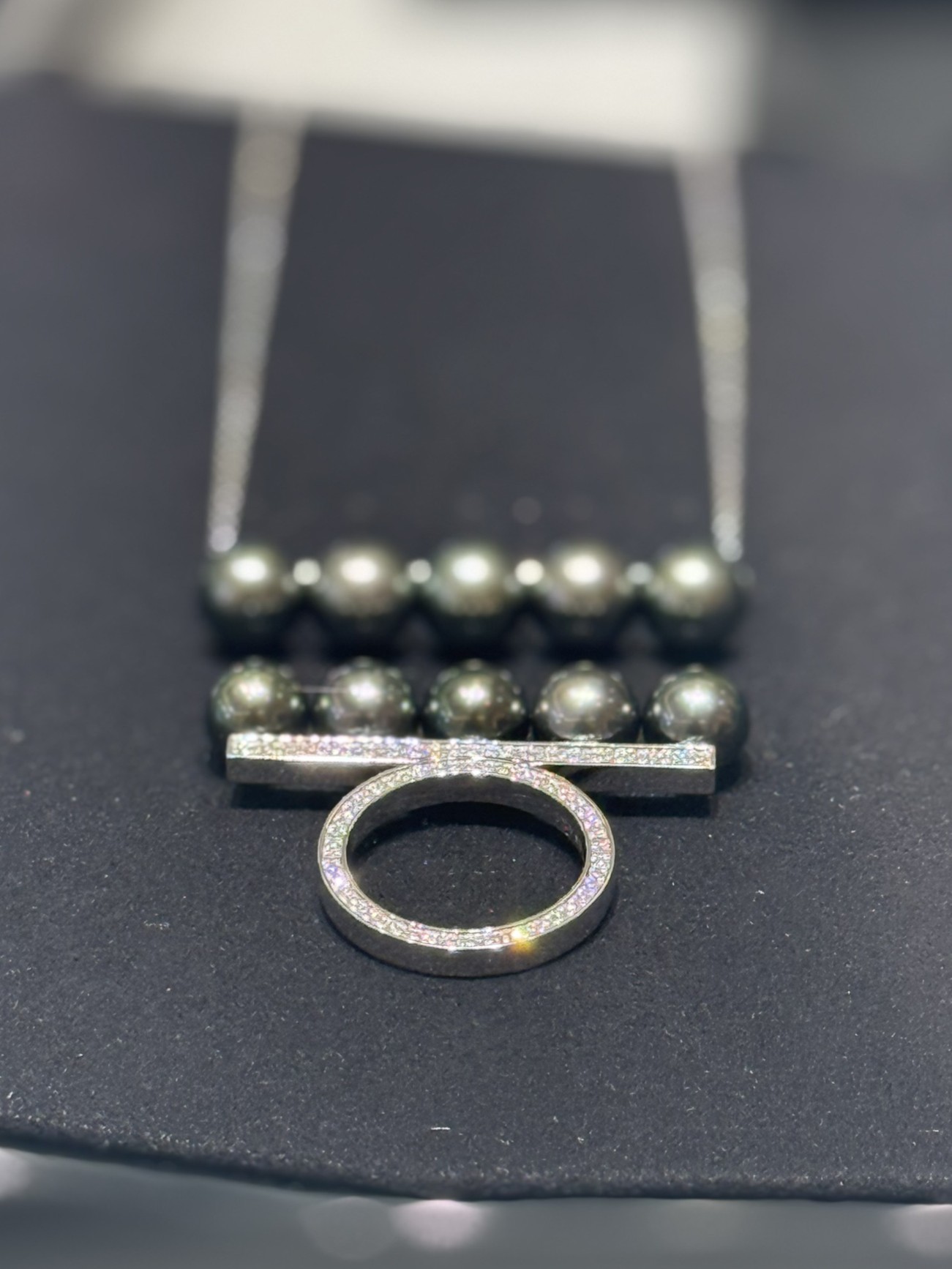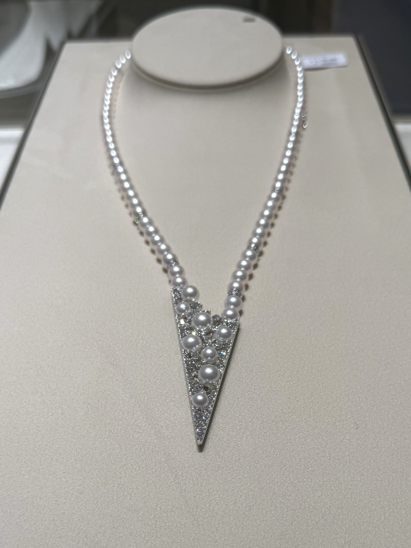 驚いたのは「ここは旗艦店の特別なフロアだっけ?」と思うようなアートピースや一点ものがブティックに飾られていること。ルイ・ヴィトンの希少なエキゾチックレザーを使ったバッグ‟カプシーヌ”や、MIKIMOTOの厳選されたネックレスなど、目を楽しませてくれるようなアイテムが並びます。ロジェ ヴィヴィエ[MK2.1]では、普段なかなか見られないアパレルピースやヘッドピースも。TASAKIでは黒真珠が並ぶ‟バランス”のネックレススとリングを先行販売など、ニュースなアイテムも揃っています。
