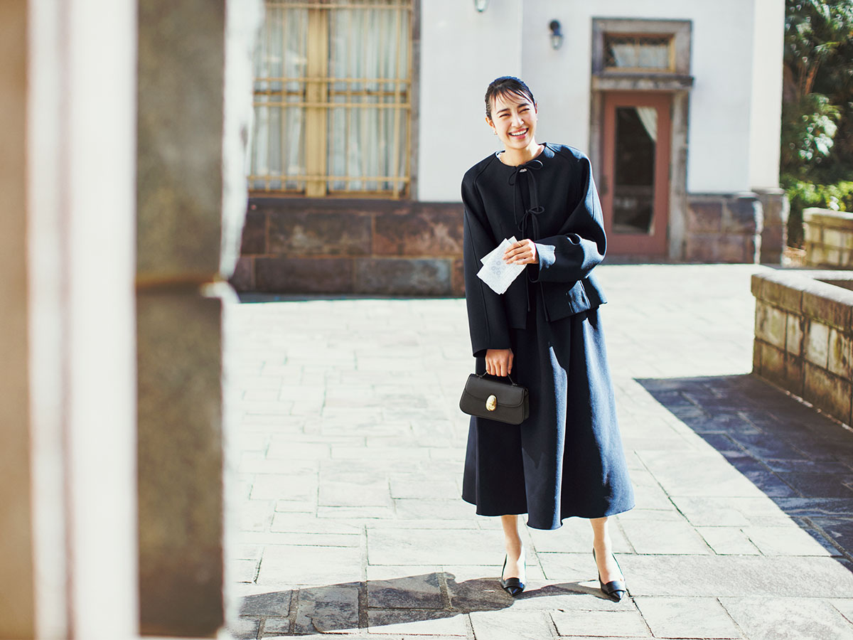 構築的なフォルムのジャケットやスカートで微モードに装って、フォーマルなシーンでも“私らしい”更新感を。