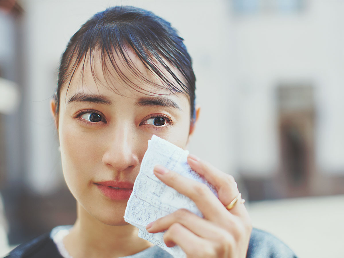 母としての顔を整える丁寧な佇まいのハンカチを