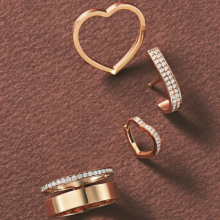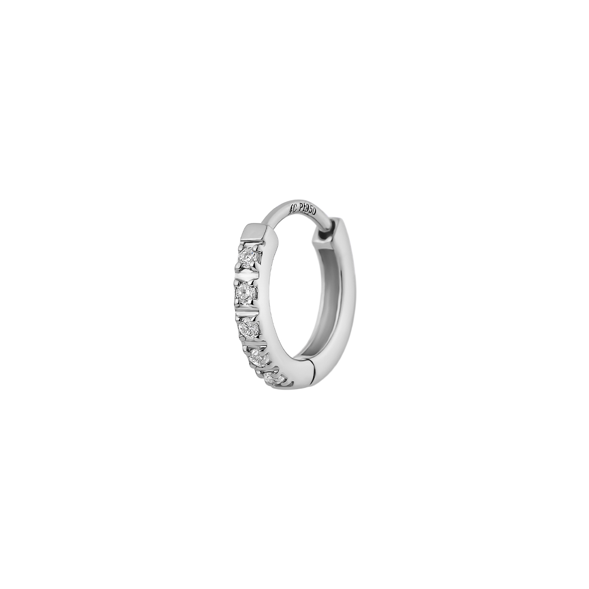 プラチナ台にダイヤモンドが配されたエレガントなデザインのミニサイズのシングルフープ。どんなコーデにも華やぎを添えてくれて、ひとつ持っていると絶対便利な万能選手です。2つ揃えても10万円以下という、ジュエリー高騰時代にうれしい価格設定も魅力。左右アシンメトリーで着けたり、サードホールがある人はメインのペアピアスにプラスしたりとアレンジ自在。