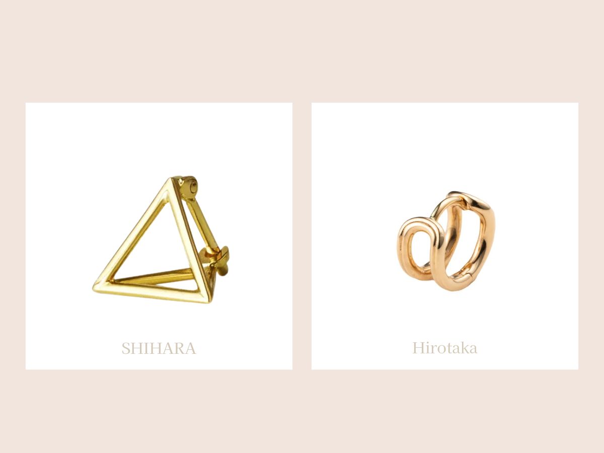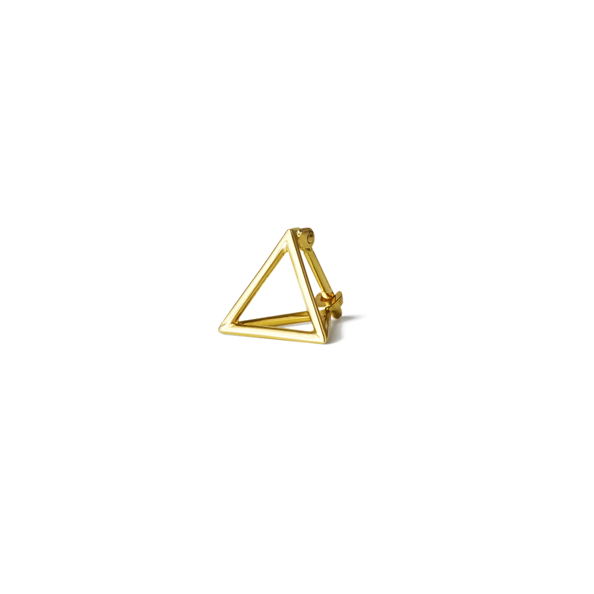 ブランドで長く愛される、アイコニックなピアス。三角錐の一辺を耳に通すデザインは、どの角度から見ても三角が可愛く見え、横顔をモダンに演出。同コレクションには立方体もあり、形違いをアシンメトリーに着けたり、同じ耳にレイヤードしても素敵。ホワイトゴールドのピアスをオーダーすることもできます。
