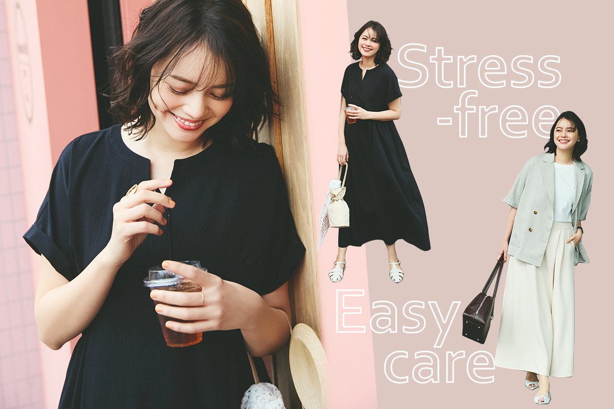 汗っかきシーズンだからこそ、しっかり洗って気持ちよく着たいし、シワシワなんて、もってのほか。大人たるものオシャレに清潔感は欠かせない。洗濯後に、取り出してシワを伸ばしながら干して、アイロンをかけて…お出かけ着だとクリーニングに持って行く手間も。そんな憂鬱な家事作業が丸っと省けたら、ママにとってこんなに嬉しいことはありません。ラクして毎日のオシャレを快適に楽しめる、ママの味方・ベルメゾンの「ラクドライ」シリーズで私時間ロスを解消!