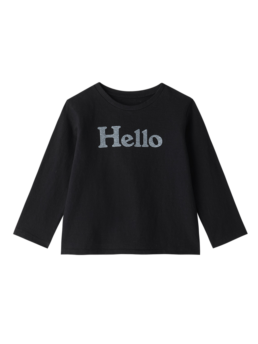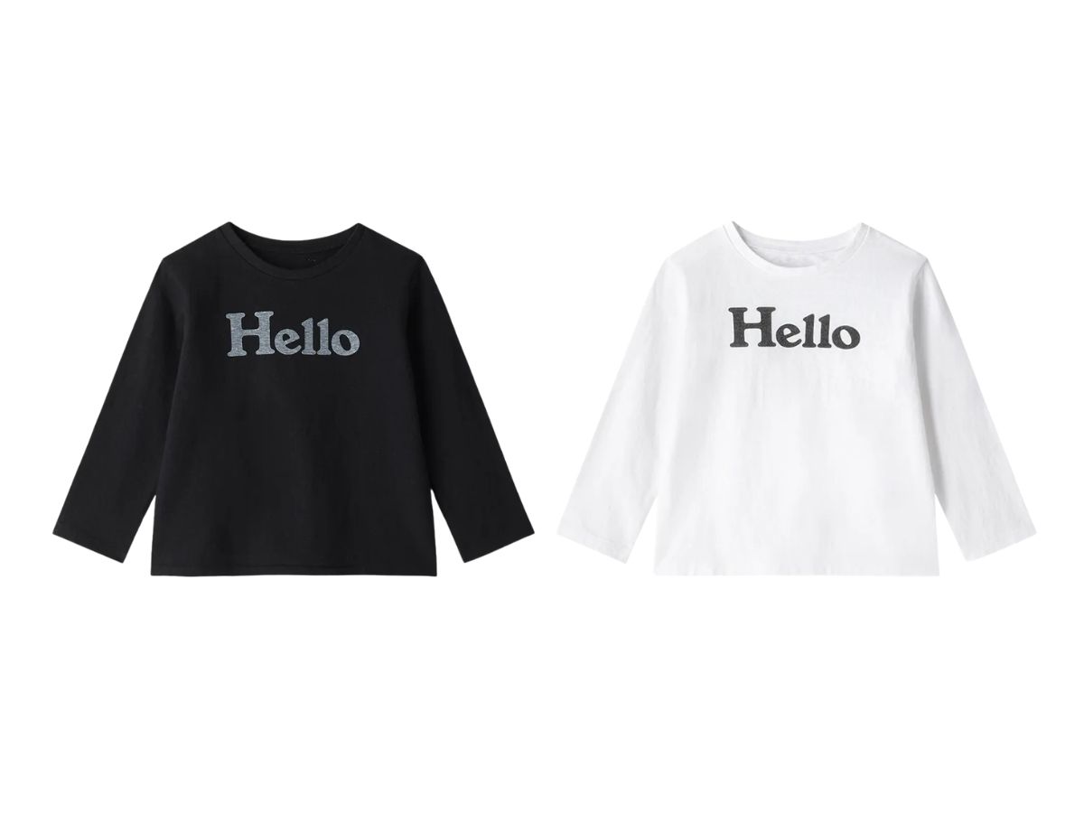 大人の服と同じバランスで作ることで、子ども服ながらこなれて見える「HELLO L/S TEE KIDS」。色はクリーンな趣のホワイトとクールに決まるブラックと、デイリースタイルに合わせやすいベーシックカラーの2色展開になっています。