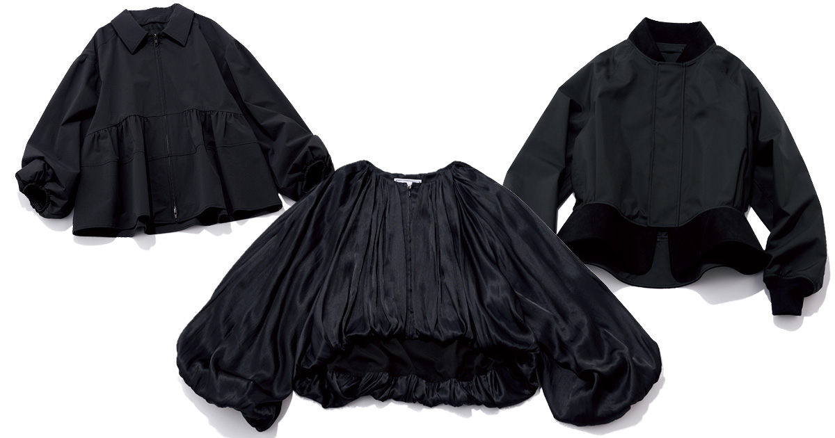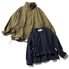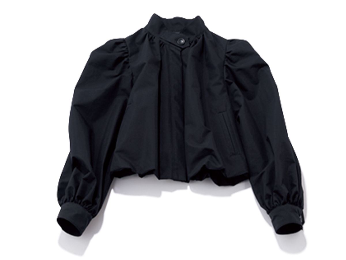 パワショルにバルーン袖など、甘ブラウス感覚なデザインが新鮮! 撥水加工付きだから雨の日や夏の水際シーンの羽織りにも。