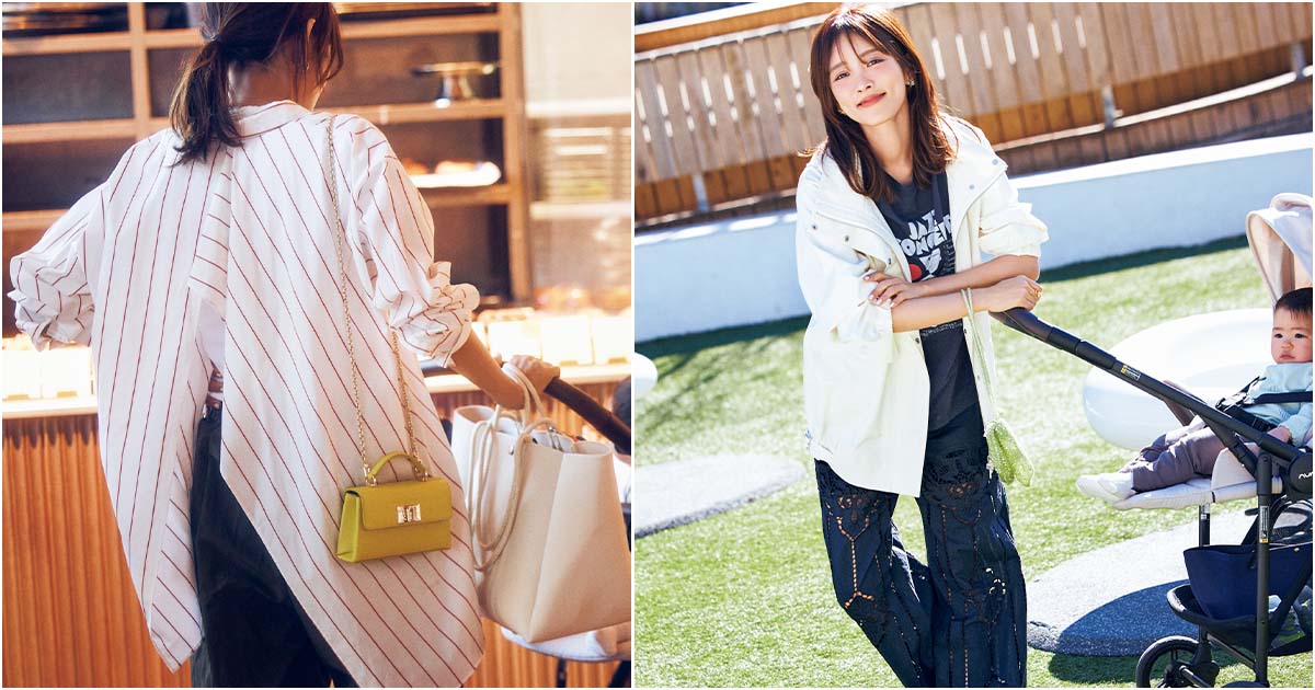 春の陽気に誘われて、赤ちゃんとのお出かけデビューが増える季節。ママだってそろそろオシャレを楽しみたいけれど、産後の体形変化や抱っこ&汚されること前提の服選びなど制限は多いもの。そんなリアルな条件を軽やかにクリアしながら、オシャレ見えを叶えている着こなしテクニックをご紹介します。