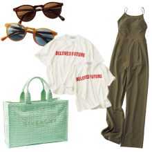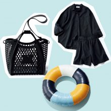 そのほかにも、濡れたものを入れられるメッシュ素材のマチ有りショルダーバッグやポーチ、コンパクトサイズのダッフルバッグ、3段階の風量調整と角度調整が可能なポータブルファンなども。水遊びだけでなく日常でも使えるシックなデザインだから、飽きが来ずに長い間使えそうです。