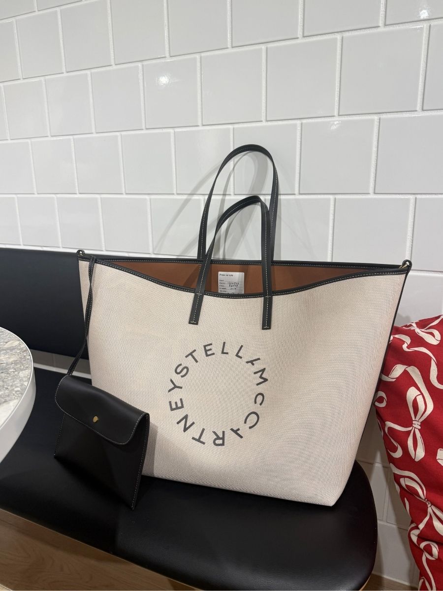 ステラ マッカートニーのロゴがポイントになった、夏に大活躍間違いなしのキャンバス素材のトート。トレンドのビッグシルエットで、肩掛けはもちろん小脇に抱えても可愛い。黒のパイピングがシックで、シンプルな装いを格上げしてくれそうです。ミニポーチ付きで、細かいものも行方不明になりません。