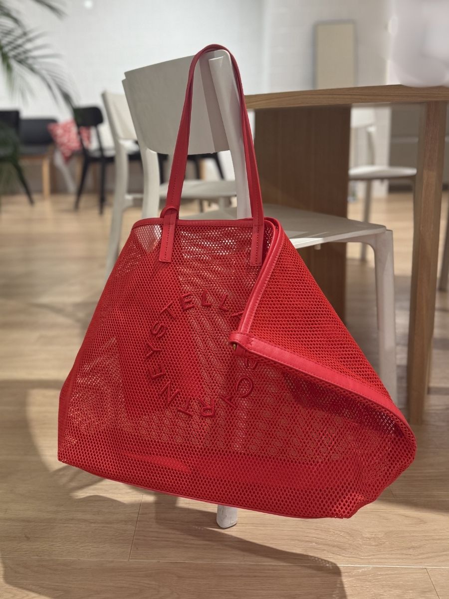 海に山にと繰り出したくなる、赤色のトート。インパクトのある色合いも、メッシュ生地だから涼やかに持てます。タオル、日焼け止め、ハンディファン…と荷物が増えても余裕な大容量は夏のお出かけに心強い! 中身が見えるから、忘れ物のチェックも簡単。
