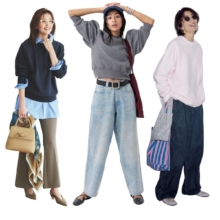 機内コーデも抜かりなく。ホテルの空調や朝晩の冷え対策にもひとくせスウェットが大活躍。