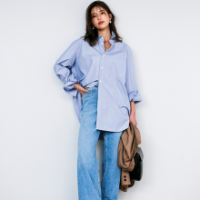 バタバタな日に増えがちなワンツーコーデ。なんにでも合わせやすいブルーベースのシャツなら羽織るだけでコーデの完成度がアップ。インナーが無地の日はストライプもおすすめです。