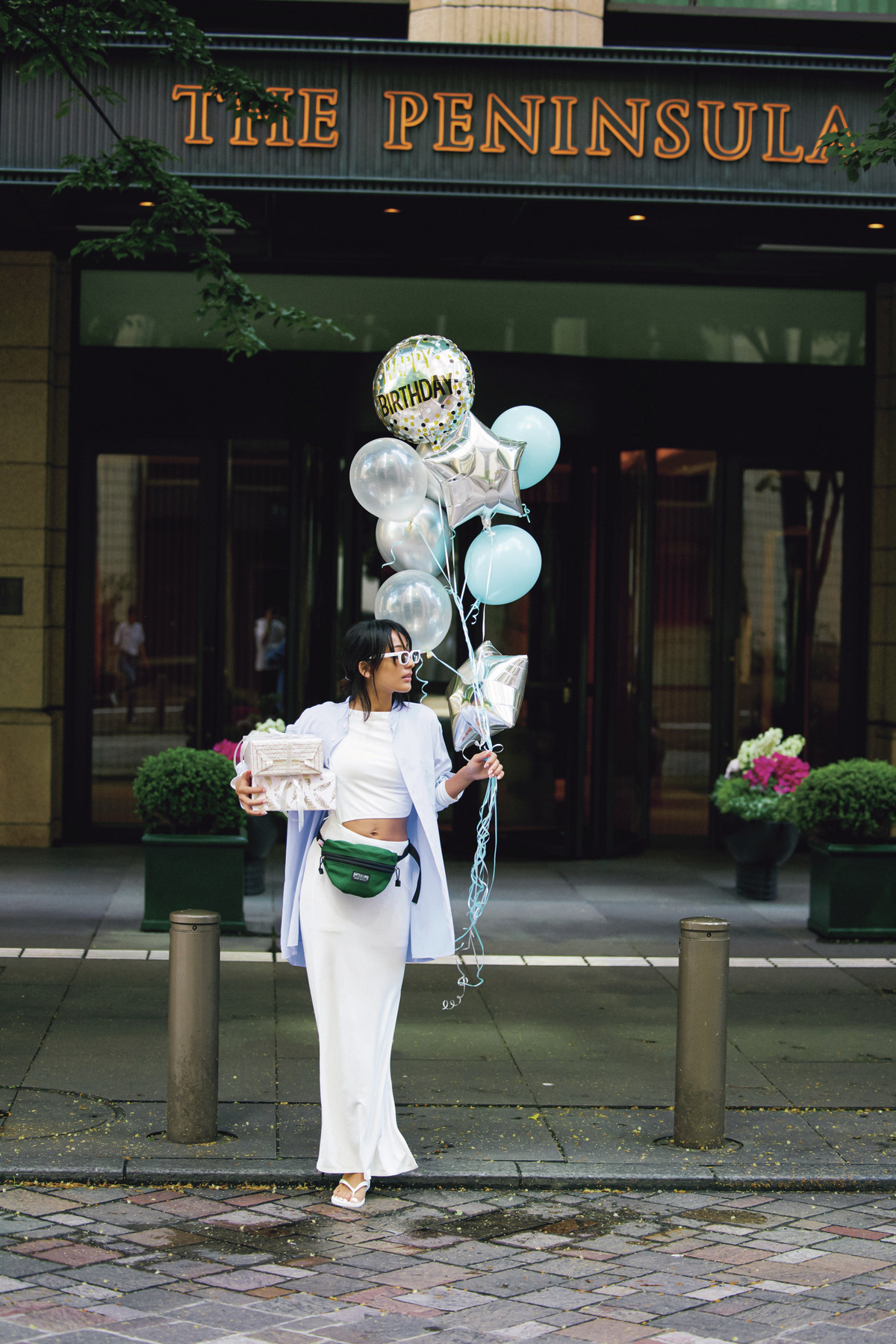 少しハードルの高いへそ出しも、シャツを羽織れば水際コーデ感覚で取り入れられるから、まずはリゾートで挑戦してみたい。やんちゃな雰囲気がブルーシャツで大人っぽく。