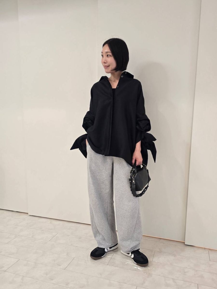 「リボンが重心を上げてくれるから、フラットシューズやスニーカーなどを合わせてもスタイルよく見えるのもポイント。ボトムスの合わせ次第で、セレモニーからスニーカースタイルまでオールマイティに着こなせるんです。