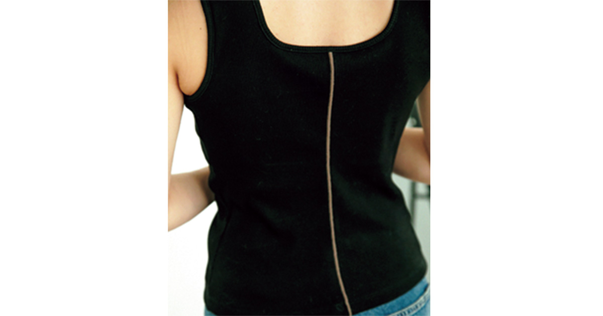 「インナーと洋服どちらの役割も果たす自信作。スクエアネックがすっきり見えする絶妙なラインにこだわりました」(広報・久保さん)