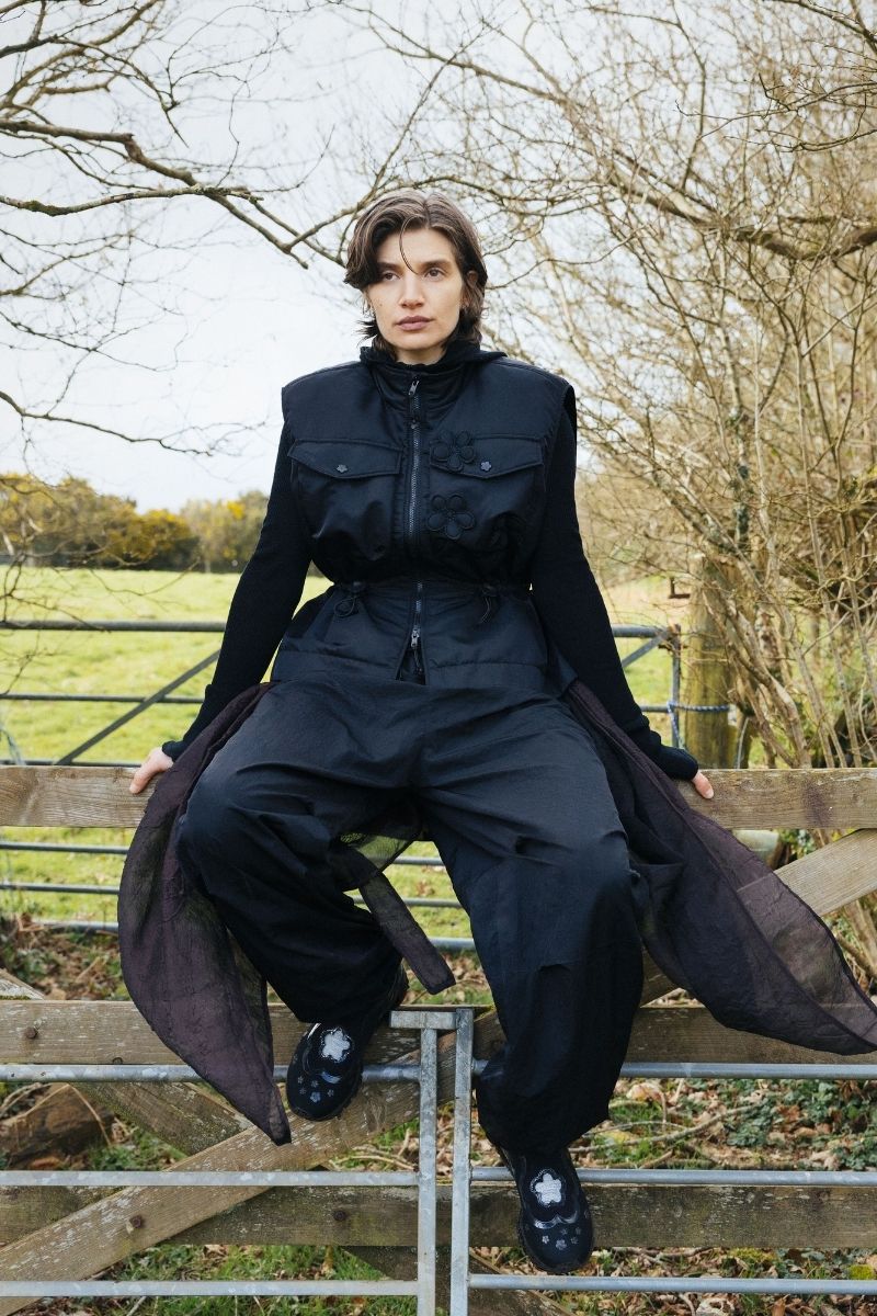 シンプルなフォルムにセシリーらしいフラワーモチーフが効いたデザインは、スニーカーの気軽さはありながら微モードな雰囲気。中央のカッティングからソックスが覗くので、花の色や柄を自分好みにアレンジできます。スリッポンタイプでサッと履ける気軽さもママの強い味方。