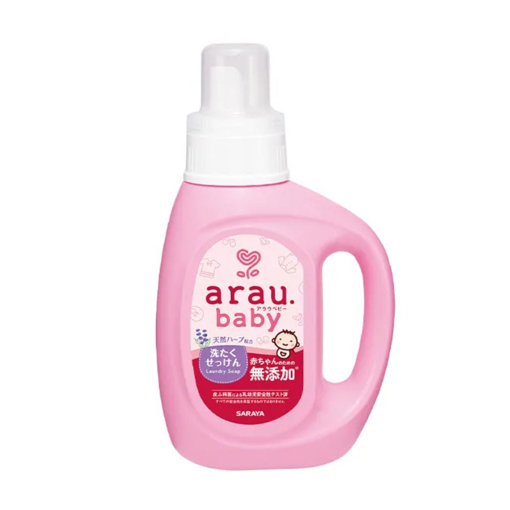 アラウ.ベビー 洗たくせっけん ¥660(アラウ.ベビー)/800ml/液体タイプ/成分:純石けん分(30%脂肪酸カリウム)・アロエエキス/香り:ほのかに香る天然ハーブとして、ラベンダー&スペアミントの天然精油を配合