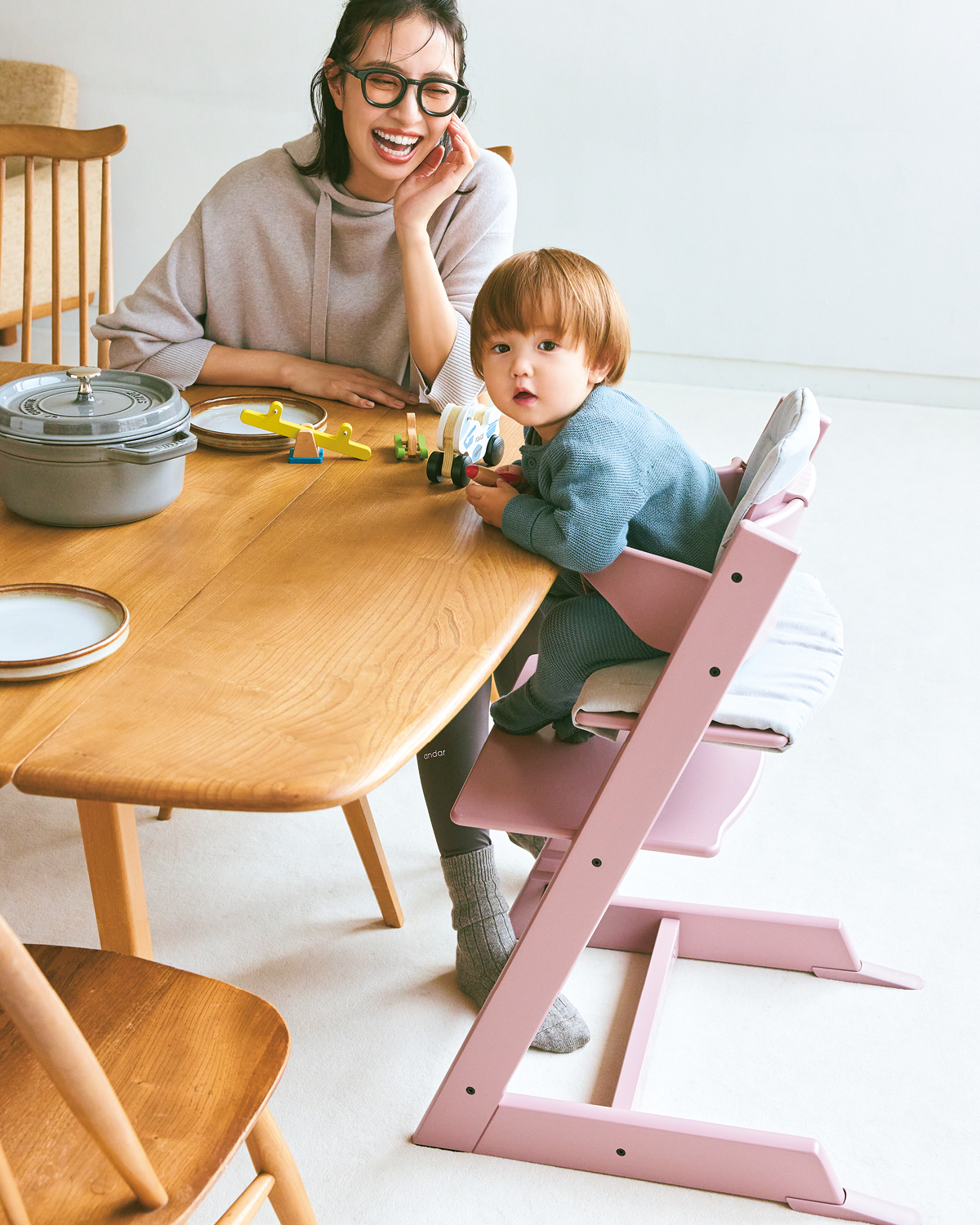 〝地下鉄やバスにスムーズに乗れる〟〝コンパクトなフォルムで、限られたスペースにもスマートに収納可能〟といった利便性はもちろん、着せ替えも楽しめる、感度高めのキャノピーもオシャレをして出かけたいママの背中を押してくれます。また、すべての製品は、〝親子の距離を近づける〟というデザイン哲学に基づいて作られ、VERY世代のカブリ名品でもある「トリップ トラップ」もそのひとつ。