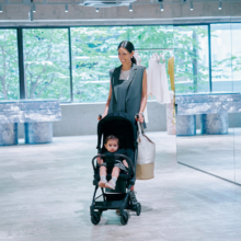ベスト¥42,900 ニット¥26,400 パンツ¥37,400(すべてアナイ) ポシェット¥75,900(マエス トソ/ハウス オブ ロータス) トートバッグ¥62,700(アヴァケーション/アルアバイル) スニーカー¥24,200(ニューバランス/ニューバランスジャパンお客様相談室) シングルピアス各¥14,850 イヤーカフ¥19,800 ネックレス¥74,800 ブレスレット¥31,900 リング¥27,500(すべてラムダ)[ベビー]ブラウス¥10,450 スカート¥10,450 カーディガン¥9,350 ぬいぐるみ¥4,950(すべてマールマール) スニーカー¥7,920(ニューバランス/ニューバランスジャパンお客様相談室) ソックス/スタイリスト私物、ベビーカー〈JOOLZ AER2〉 サンデートープ¥85,800(ジュールズ/GMP インターナショナル)