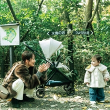 [ベビー]Gジャン¥9,990 ロンパース¥3,490 カーディガン¥5,990 デニムパンツ¥5,990 ぬいぐるみ¥2,490(すべてbabyGap) スニーカー¥11,990(ニューバランス/ニューバランスジャパンお客様相談室) ソックス/スタイリスト私物ベビーカー〈JEEP Holiday/ブラック〉¥27,500(JEEP/ティーレックス)