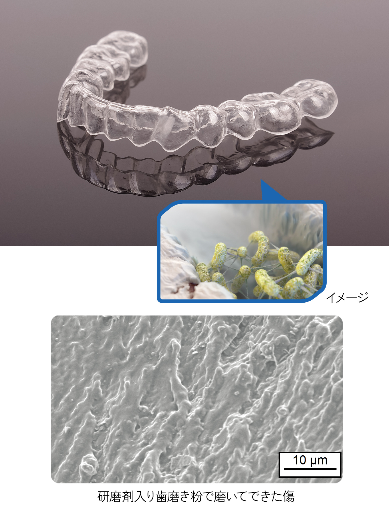 マウスピースの裏側は凸凹していて歯垢や汚れが付きやすく、それが黄ばみやヌメリ、ニオイの原因に。「ちゃんと洗っているから大丈夫!」と思ったら大間違い。水洗いだけでは菌が残ってしまうし、歯磨き粉で磨くとマウスピースの表面に傷が…。
