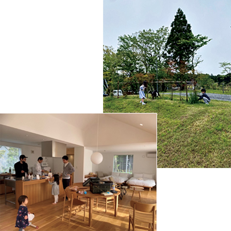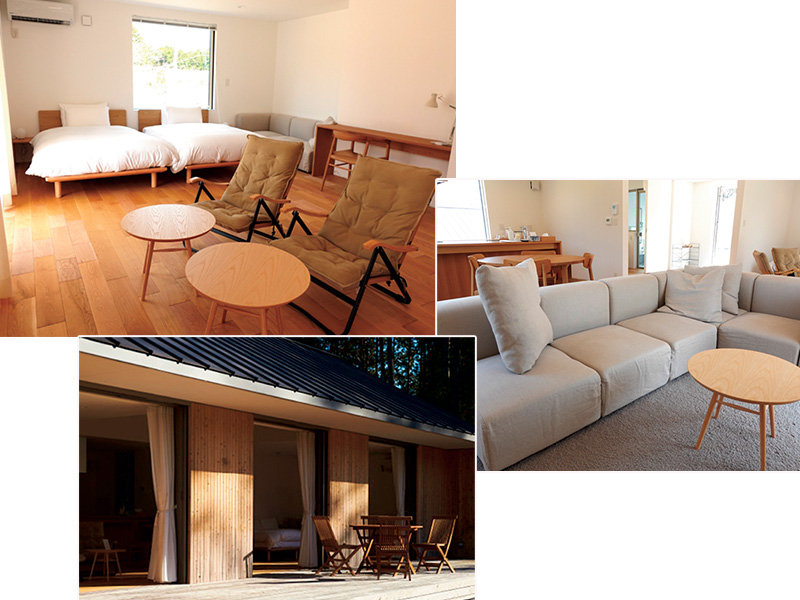 仲良し友達家族とのびのびと自然を満喫する旅もしたいと思いつつ、キャンプより今回は大人もゆっくりしたいよね!ということで選んだのが、無印良品の家がコテージとして借りられるこちら。スタイリッシュで清潔感があり、まるで暮らすようにゆっくり過ごすことができました。リビングから続く広々としたテラスやお庭で子どもたちも思い思いに遊び、夕食はみんなで自炊。動物も飼育されていて触れ合いも楽しかった!