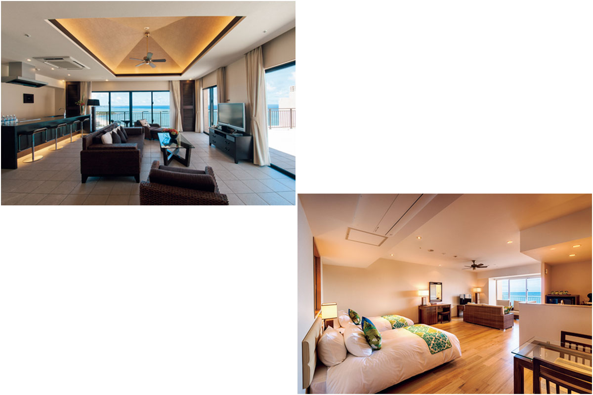 沖縄県国頭郡恩納村冨着志利福地原246-1 ☎098-964-7000 料金/ホテル棟スーペリア(36㎡)¥26,500/室〜、コンドミニアム棟スイート(70㎡)¥28,950/室〜※すべて大人2名1室利用時の価格、朝食付き、税金・サービス料込み)
