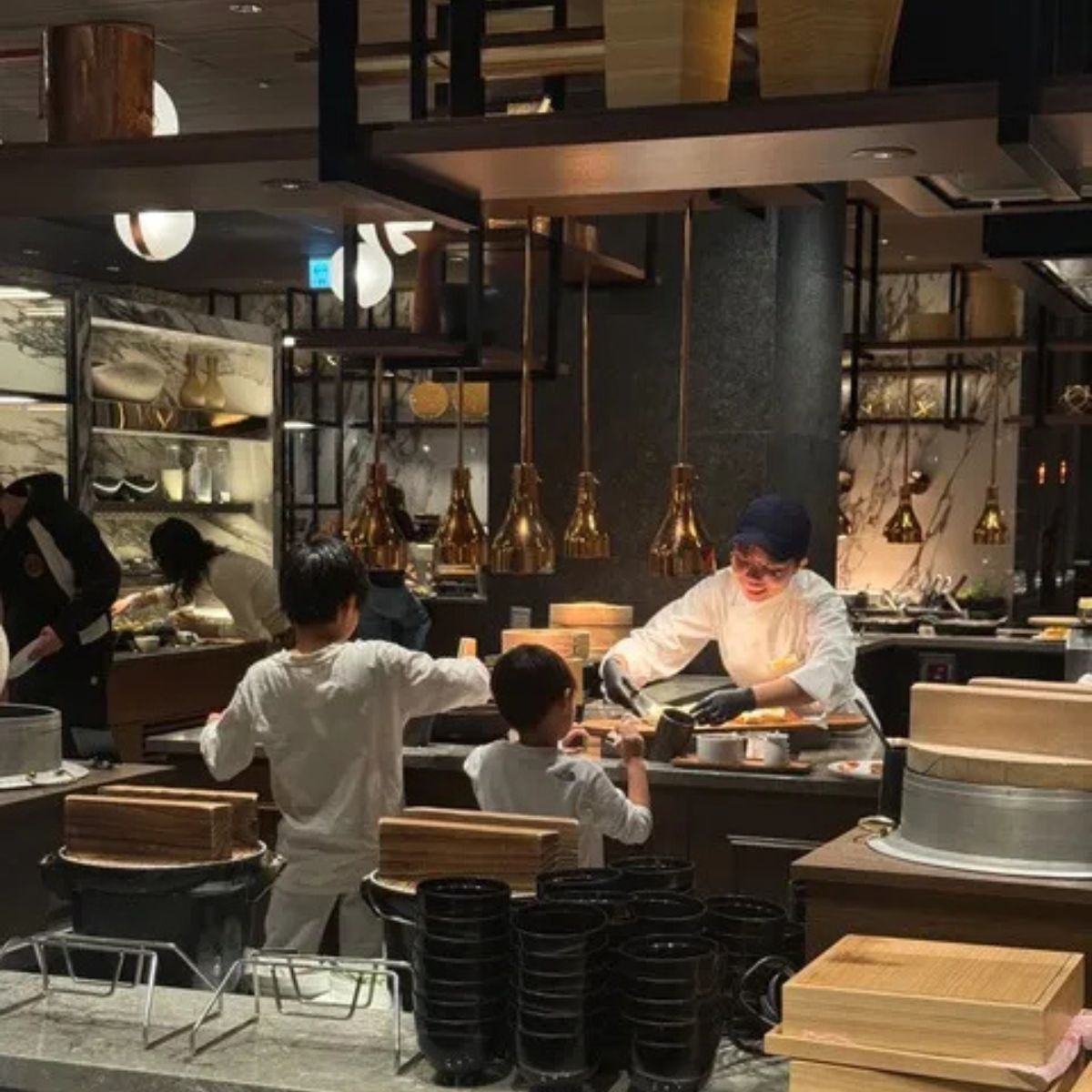 旅の醍醐味、「食」を存分に満喫できるオールデイダイニング「Teori」のビュッフェは子ども夢中になるメニューがずらり! 夜は人気の牛サーロインのローストをはじめ、ライブクッキングではできたての天ぷらやパスタも。エスニックやアジアの要素を取り入れたオリジナリティあふれる料理から京のおばんざいまでたっぷりいただけます。朝はおむすびや京都ラーメンなどの和食も充実。パティシエによるスイーツも抹茶のフィナンシェやお団子、わらびもちなど見た目も楽しい本格的な和菓子もたくさん。好きなものを好きなだけ食べられるビュッフェは、家族みんなのエンターテイメント!