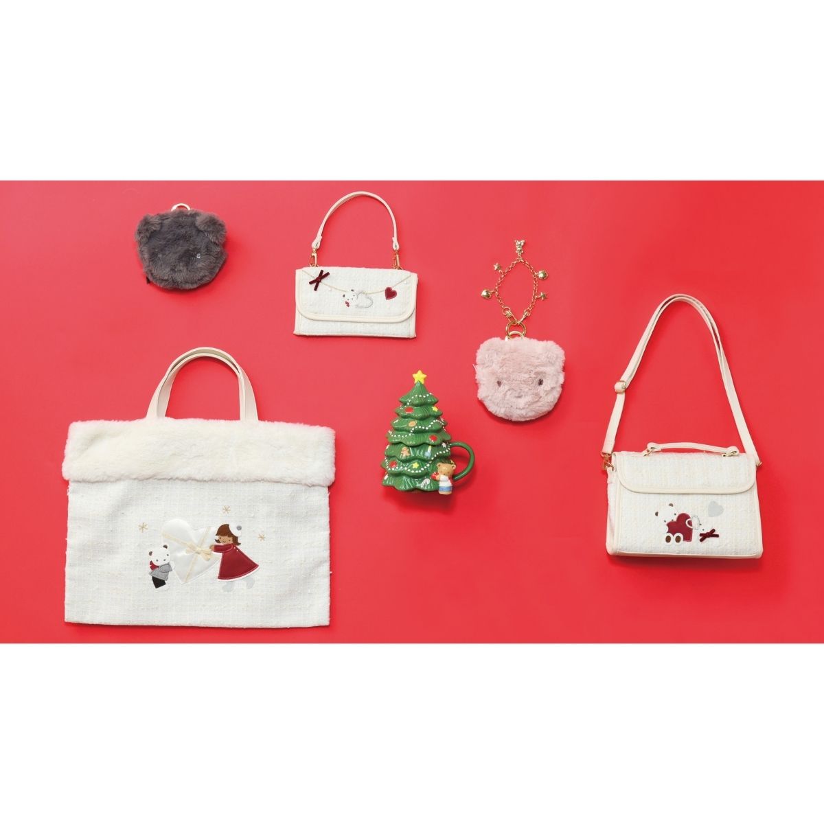 ホワイトツイードのバッグ、バッグに付けたいふわふわのクマちゃんポーチなどクリスマス限定アイテムも!