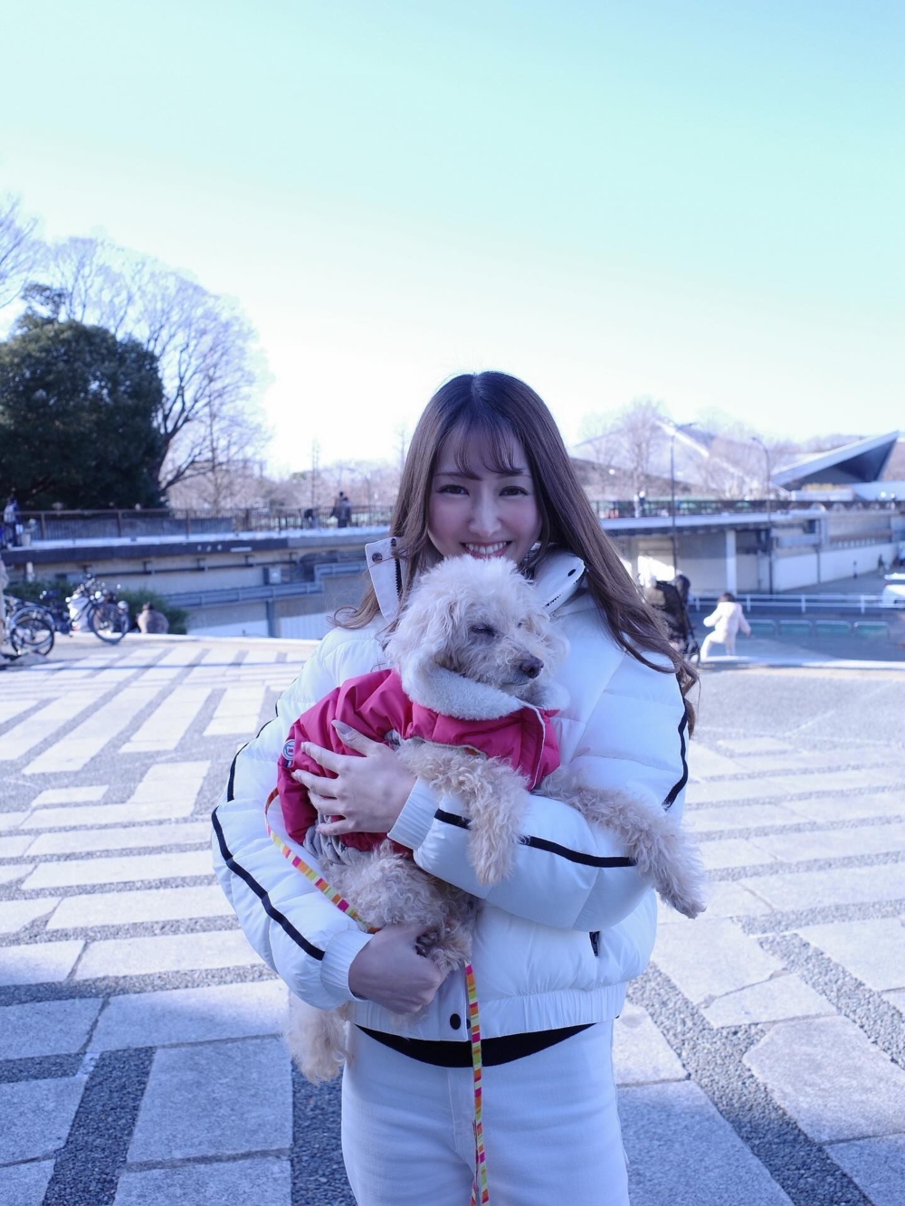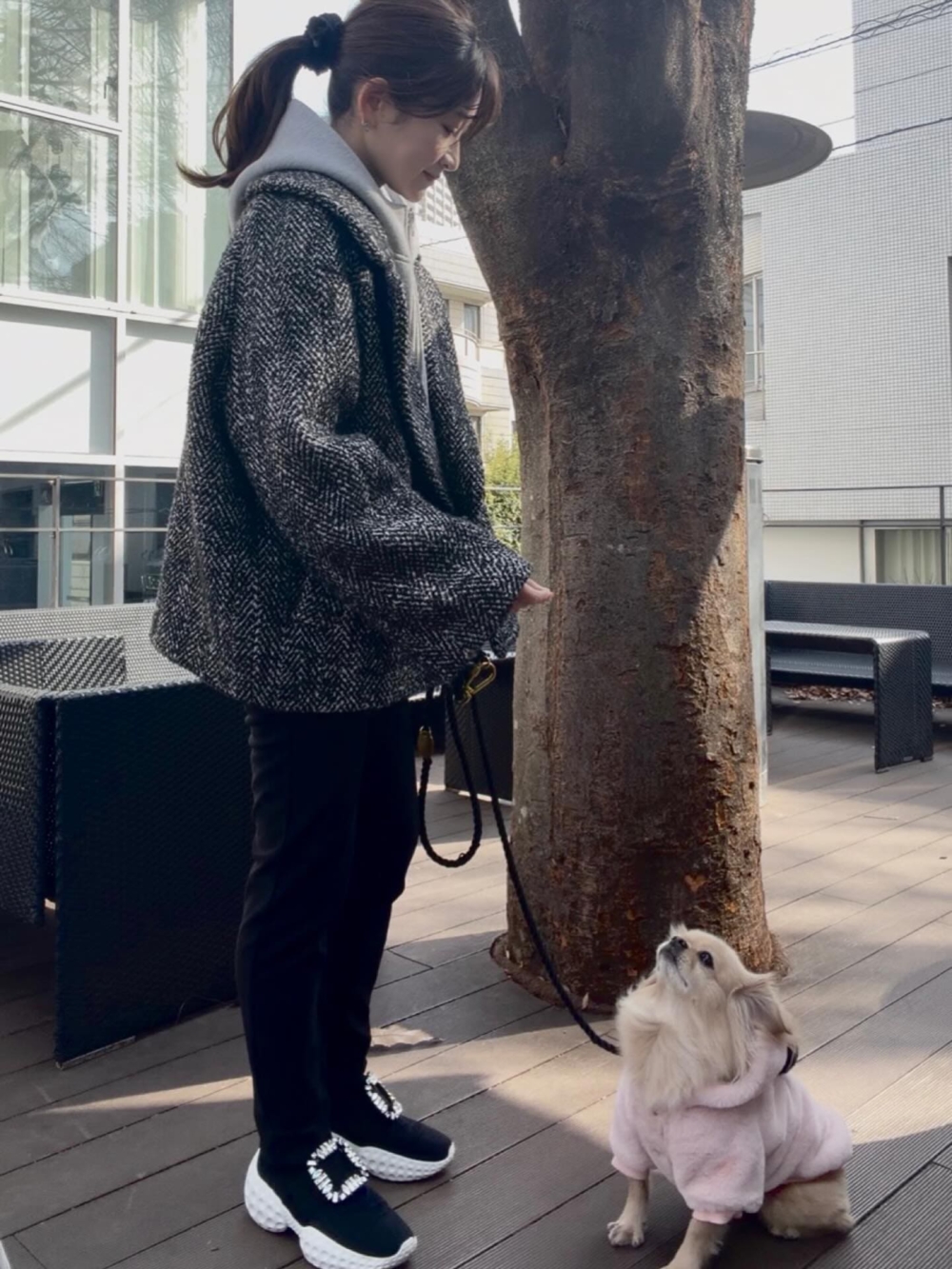 飼い主さんの方が合わせにいった、お揃いもこもこルックがとってもお似合い♡