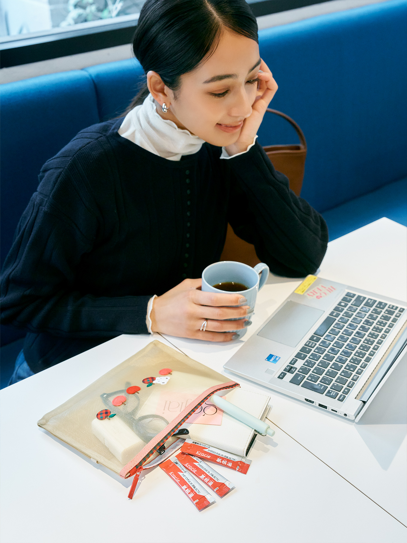 【お仕事】タートルトップス¥3,498(ロペピクニック)トップス¥14,300(ルージュ・ヴィフ アンナ/アバハウスインターナショナル オンラインストア)バッグ¥6,930(カランシエル/シップス インフォメーションセンター)ピアス¥13,200(プラス ヴァンドーム)リング¥29,700(ケンゴ クマ プラス マユ/ヴァンドームヤマダ)ポーチ¥7,480(ファミリア/ファミリアカスタマーサービスセンター)