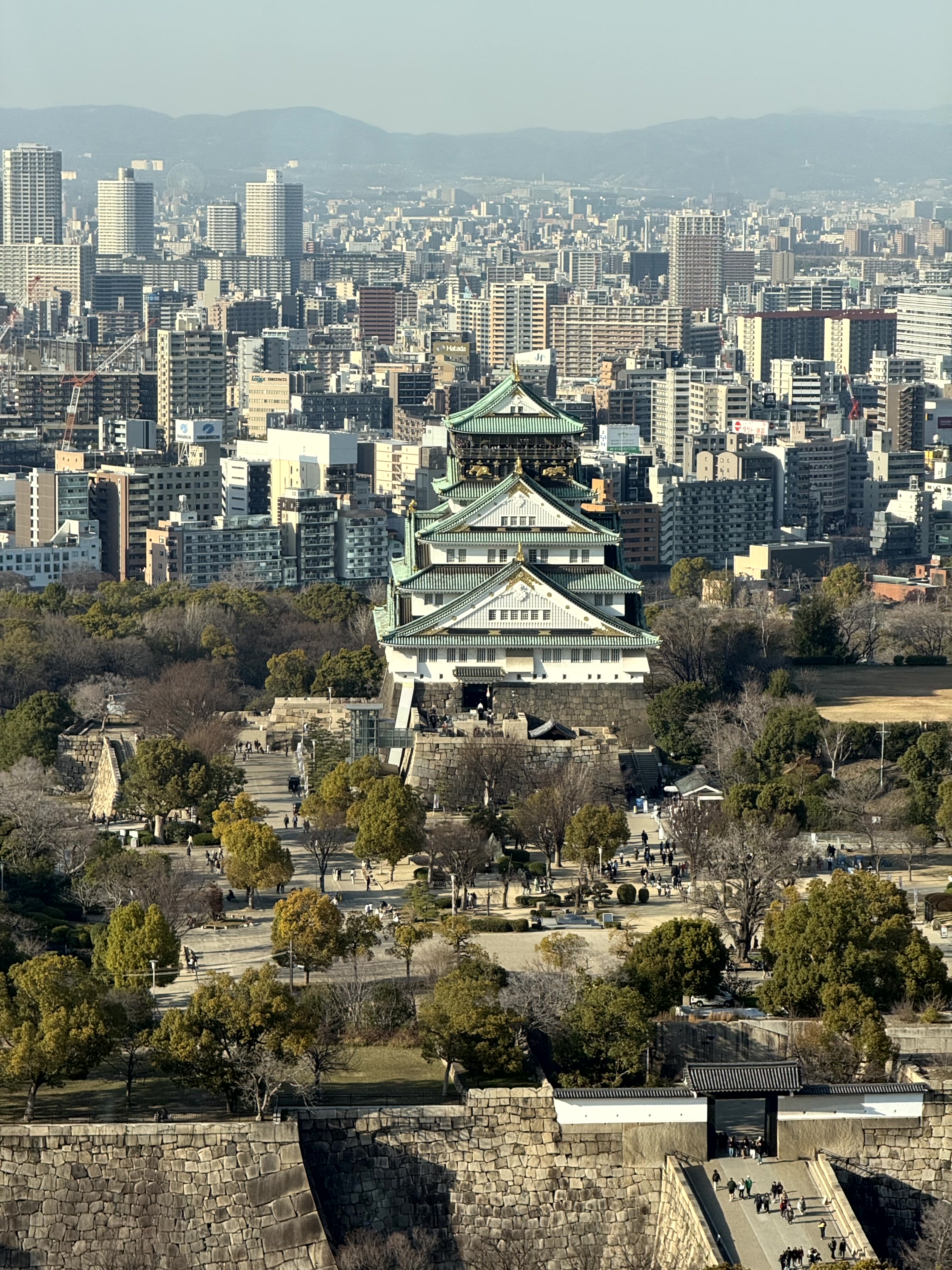 目の前は大阪城! 飛行機を数えるのにも夢中に