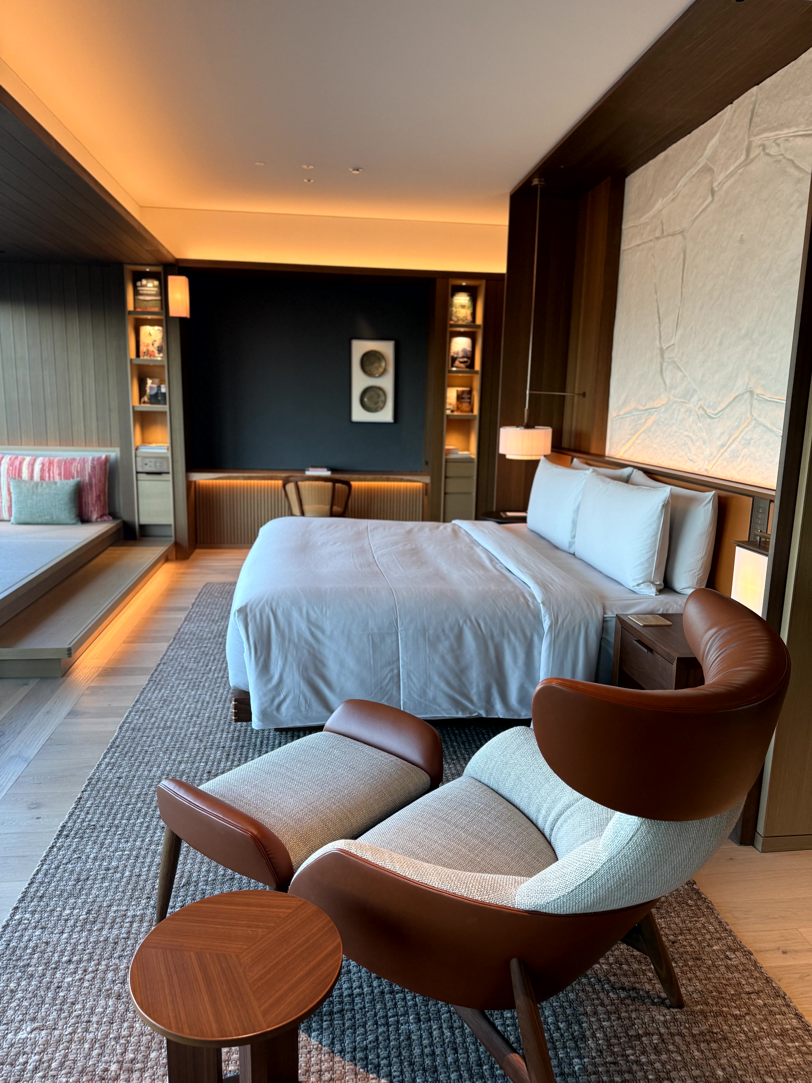すべての客室は50平米以上で畳のシーティングスペースがあり、赤ちゃんをゴロンと寝かせることも可能。ただし、段があるので動けるようになった赤ちゃんは目を離さないようにご注意を。畳には布団を敷いてベッドとしても利用できるので、子どもが喜んで、一人寝デビューできちゃうかもしれません。