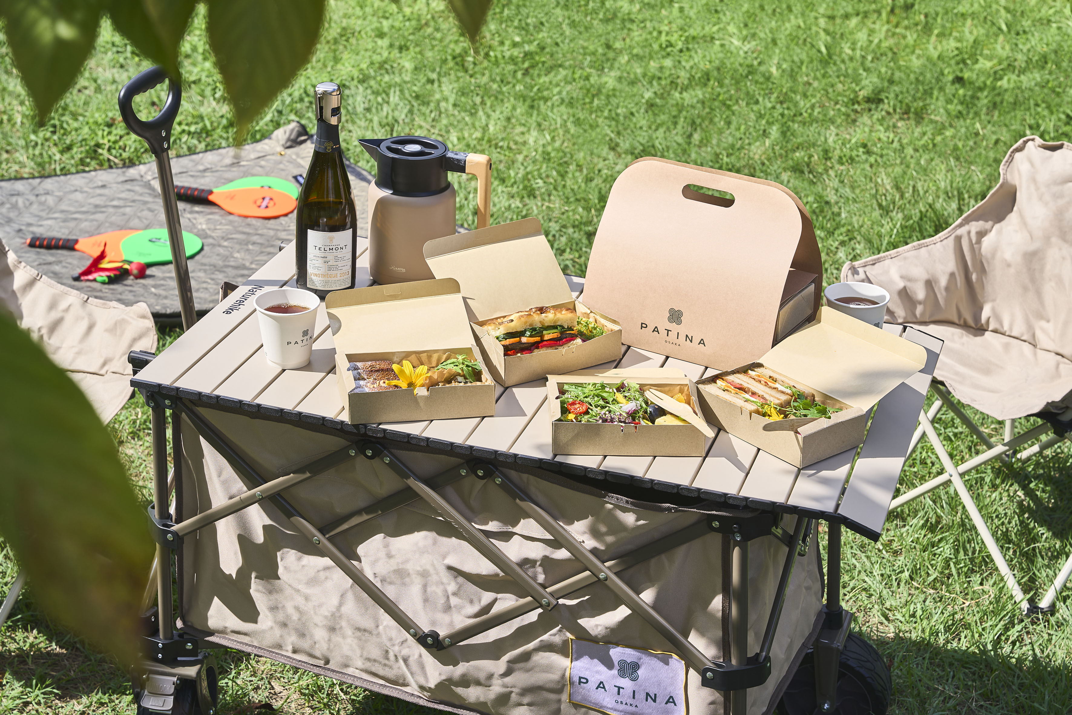 ホテルの目の前は大阪城で、大阪有数のお花見スポット。開業後初のお花見シーズンであるものの、すでにアフタヌーンティーを予約しているという声も聞くほどの注目を集めています。“P72”でピクニックセットやサンドイッチセットなどを買って行けば、「映えるお花見」もできそうです。 しかも、パティーナピクニックを頼めば、ピクニックワゴンと2名分のチェアの貸し出しも(要予約、レンタル時間3時間)! オプションでピクニックシートのほか、ジャズミントン、ちょっと寒い日にはブランケットの貸し出し(各¥500)もあるから、 パティーナに泊まってふらりとお花見、なんていう選択もできちゃいます。
