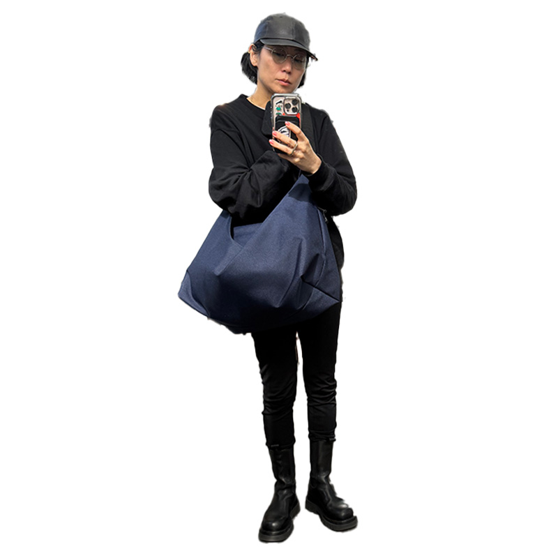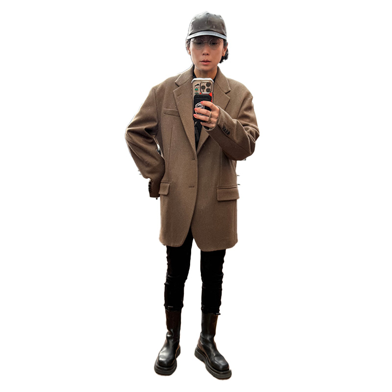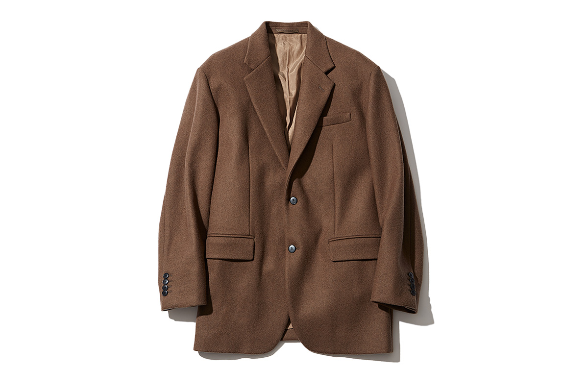 ここにはないのですが、スウェットのセットアップは3色すべて色に合わせて洗いなど手法を変えていたりする、デザイナー・田口令子さんの細やかでストイックな服作りと服への向き合い方がまず好きです。心は奪われると離れないもので、今季は10着をオーダー、自分でも驚きました。いちばん最初に決めたのは、メルトン素材のジャケット。パリの展示会では一番人気だったと聞きましたが、田口さんが各国を回られて、そこでの反応をまたお洋服作りに反映しているところにも、グッときて。素材にはノンミュールジングの梳毛原料を使用することで、毛羽立ちにくくしなやかに。さらにオーバーダイすることで独特なメランジ感を実現しています。ウィメンズでの展開もあるのですが、私はメンズサイズの「4」をオーダー。展示会でメンズのコーナーまでくまなく見るのもイレーヴならではです。