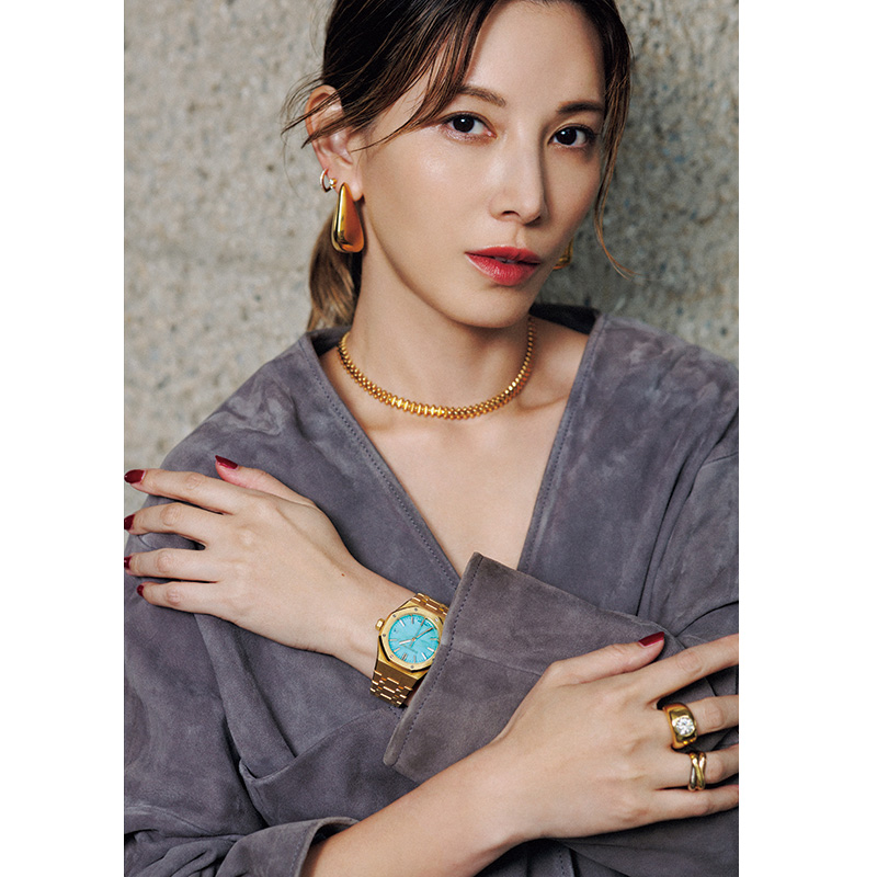 俳優、モデル、3児の母。多彩な顔を持つ加藤あいさん。普段のジュエリーは、カジュアルにも寄り添う地金ゴールドを中心に、その日の気分とTPOでしなやかにセレクトするのが彼女の“今”のスタイル。「昨年出会い本当に購入してよかったと思うカルティエ クラッシュ ドゥ カルティエのネックレス。程よいボリューム感と煌めきが今の自分にしっくり。華奢すぎるものより、存在感のあるセットを日常使いに」