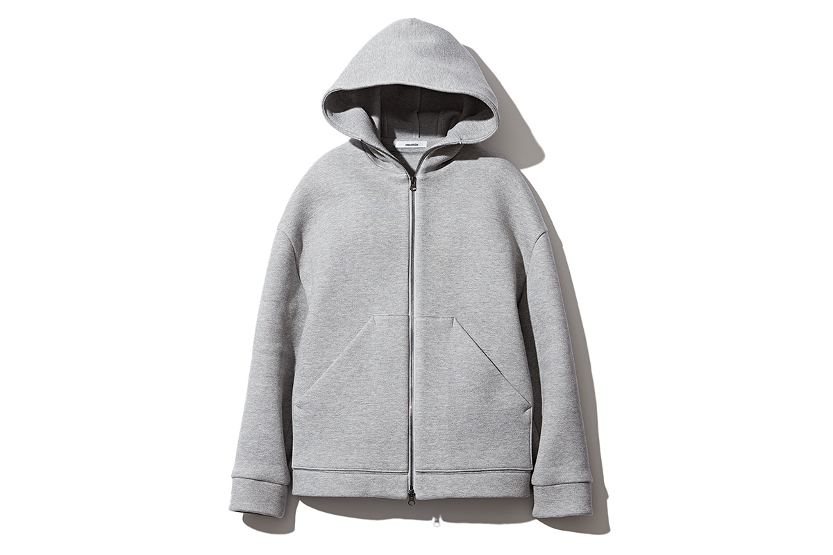 昔は地厚なフーディが大好きだったのに、年齢を重ねて「厚め(暑め)」「重め」のスウェットがじわじわ苦手になりました。ジャケットからフードを出すなんて、可愛くて大好きなカジュアルコーデの筆頭なのに。そんななか、嬉しい“ジップの”“キレイめ”フーディジャケットとの出会いが……!素材は、ボンディングのようなハリや膨らみ、肉感を表現したという“ダブルボンディングニット”。ちょっとこれまでのフーディ印象と一線を画します。これは久しぶりのグレーパーカ、復活ではないか……!?ディレクターさんもかなりのお気に入りで、今後の定番化が決定したそうです♡