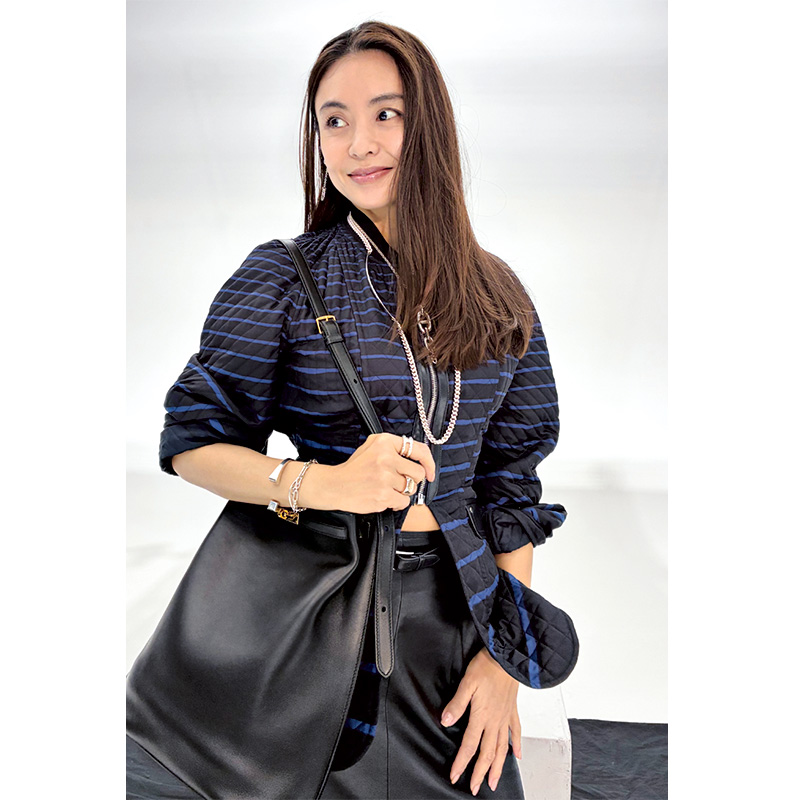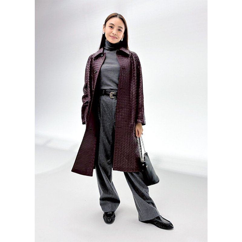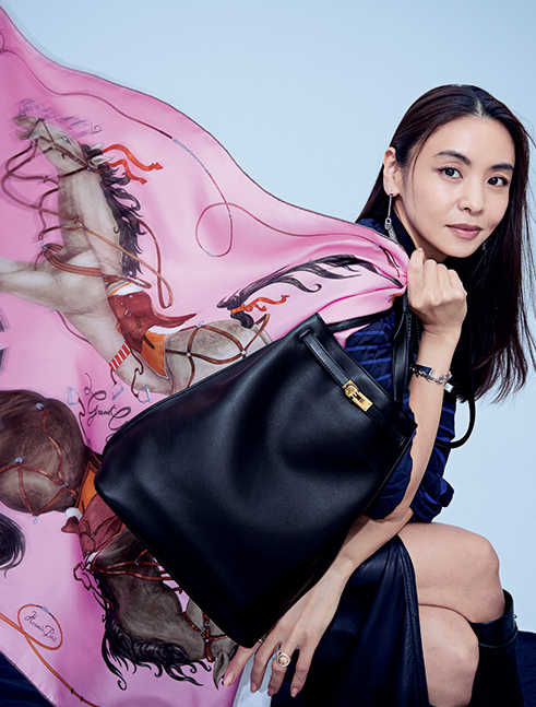 ダイジェスト版の表紙は「エルメス」のシルクツイルのカレを主役にした躍動感のあるスタイリング。2026年の干支で午年生まれの滝沢さんを象徴するモチーフとして“馬”をチョイスしてみました。軽やかに駆け抜ける2頭の馬は、身につけるだけでご利益がありそう♡と現場でも話題に。キルティングジャケットにレザーのスリットスカートを合わせたフレンチシックなスタイルに、しなやかな“ケリー”のショルダーバッグが春のおしゃれに新風を吹き込みます。