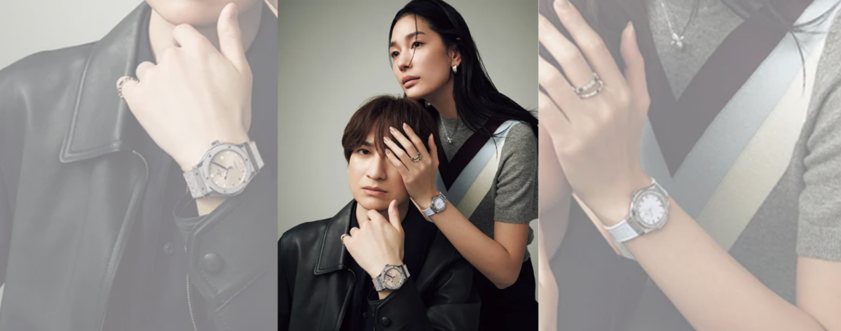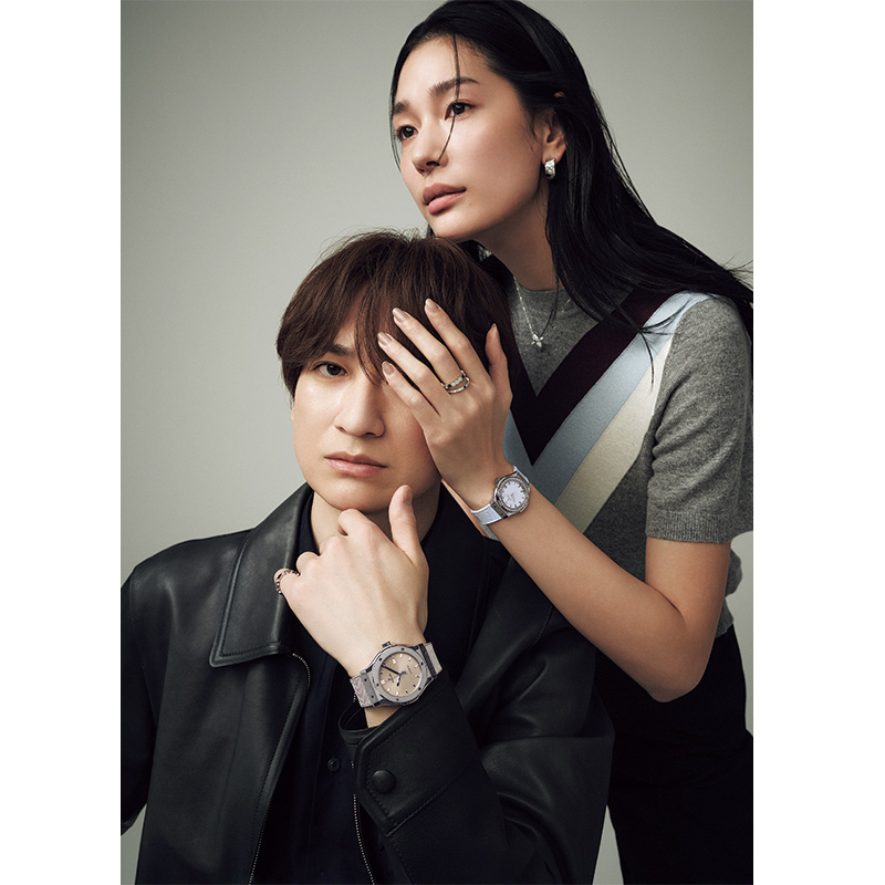 [宮田さん]時計〈クラシック・フュージョン エッセンシャル トープ〉[ケース径42mm、5気圧防水、自動巻き、オンライン限定]¥1,199,000(HUBLOT/LVMHウォッチ・ジュエリー ジャパン ウブロ)ブルゾン¥1,226,500シャツ¥111,100(ともにBERLUTI/ベルルッティ・インフォメーション・デスク)リング¥698,500CHAUMET(ショーメ)[大塚さん]日本人女性の華奢な腕元を可憐に演出する日本限定モデル。白く輝くマザーオブパールのダイアルと、ベゼルに煌めくダイヤモンドがエレガントな雰囲気。時計〈クラシック・フュージョン パールホワイト ダイヤモンド〉[ケース径33mm、マザーオブパール×ダイヤモンド、5気圧防水、クォーツ]¥1,419,000(HUBLOT/LVMHウォッチ・ジュエリー ジャパン ウブロ)ニット¥73,700パンツ¥117,700※参考価格(各Tory Burch/Tory Burch Japan)ネックレス¥1,353,000ピアス¥3,751,000リング (左中指 上)¥698,500リング(左中指 下)¥509,300(すべてCHAUMET/ショーメ)
