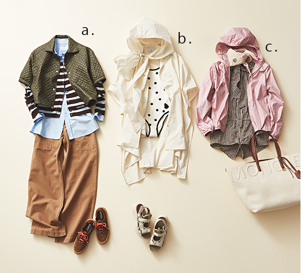 軽量で持ち運びしやすいから春夏はもちろん旅でも味方になるウィンドブレーカー。スポーティなムードで今年顔のギンガムチェックもラフ&ヘルシーにシフト。ピンク×ブラウンの配色も新鮮。ジャケット¥155,100オールインワン¥166,100スカーフ¥64,900バッグ[H36×W42×D17cm]¥299,200(すべてモンクレール/モンクレール ジャパン)