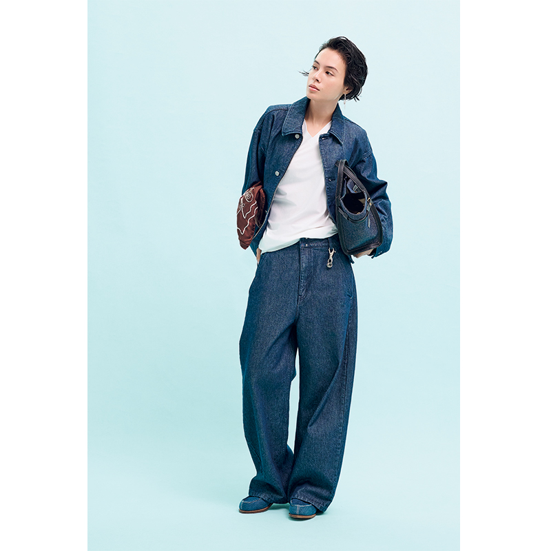 素材やパターンへのこだわりと細部まで宿る丁寧なものづくりに定評があるデパリエ。感度の高い人たちの間で人気を集める、カバーオールのジャケットはボクシーな美シルエットに加えてジップ&シルバーボタンのW仕様もツウ心をくすぐるポイント。バルーンデニムはワイドすぎない丸みと日本人に寄せた丈感に。シルエット上手なブランドこその美しさで、デニムONデニム初心者もトライしやすい。