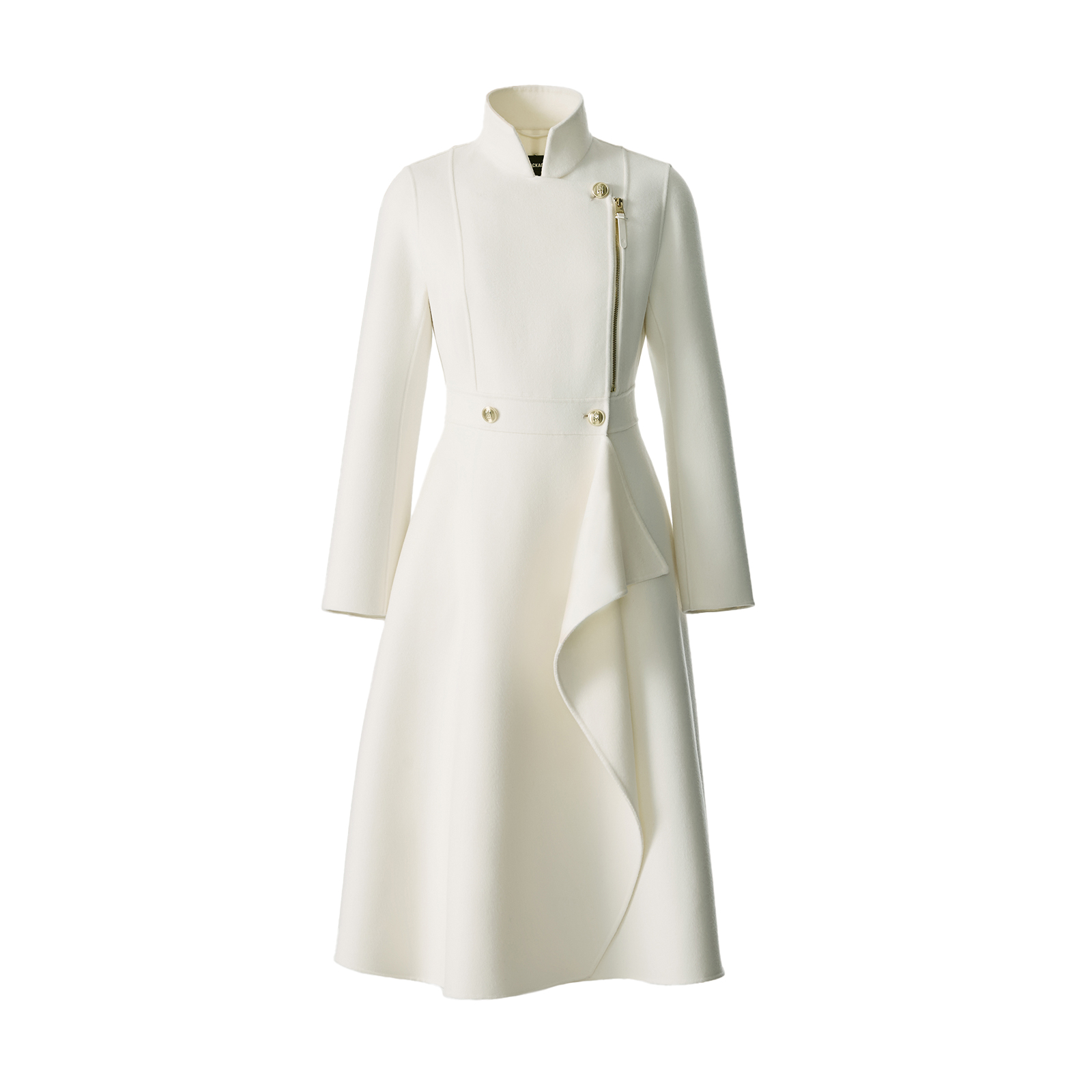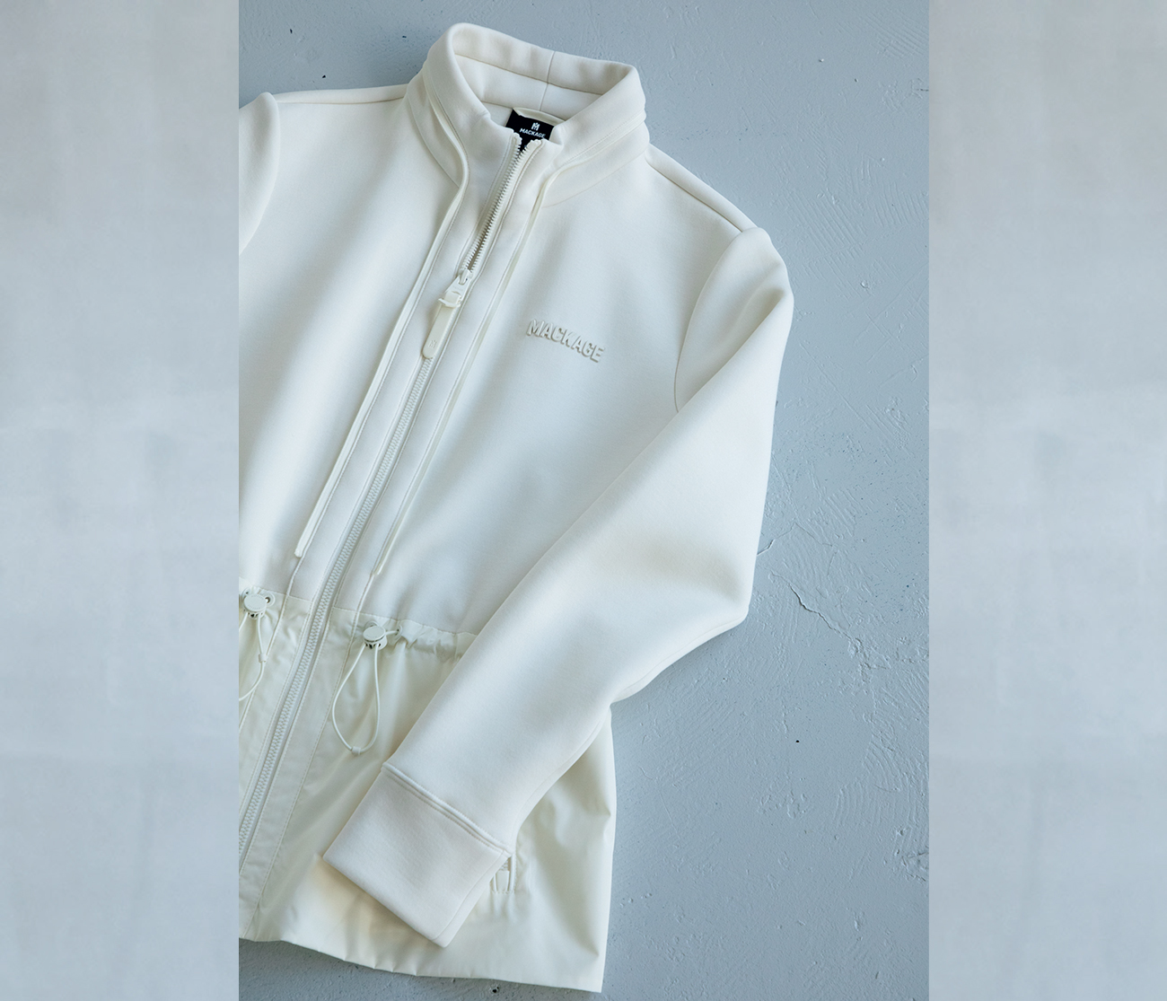 エッジのきいたデザインはマッカージュの特徴のひとつ。アシンメトリーなファスナーやボタン使い、ウエストをキュッと絞ったドレスライクなシルエットも今の気分にぴったり!