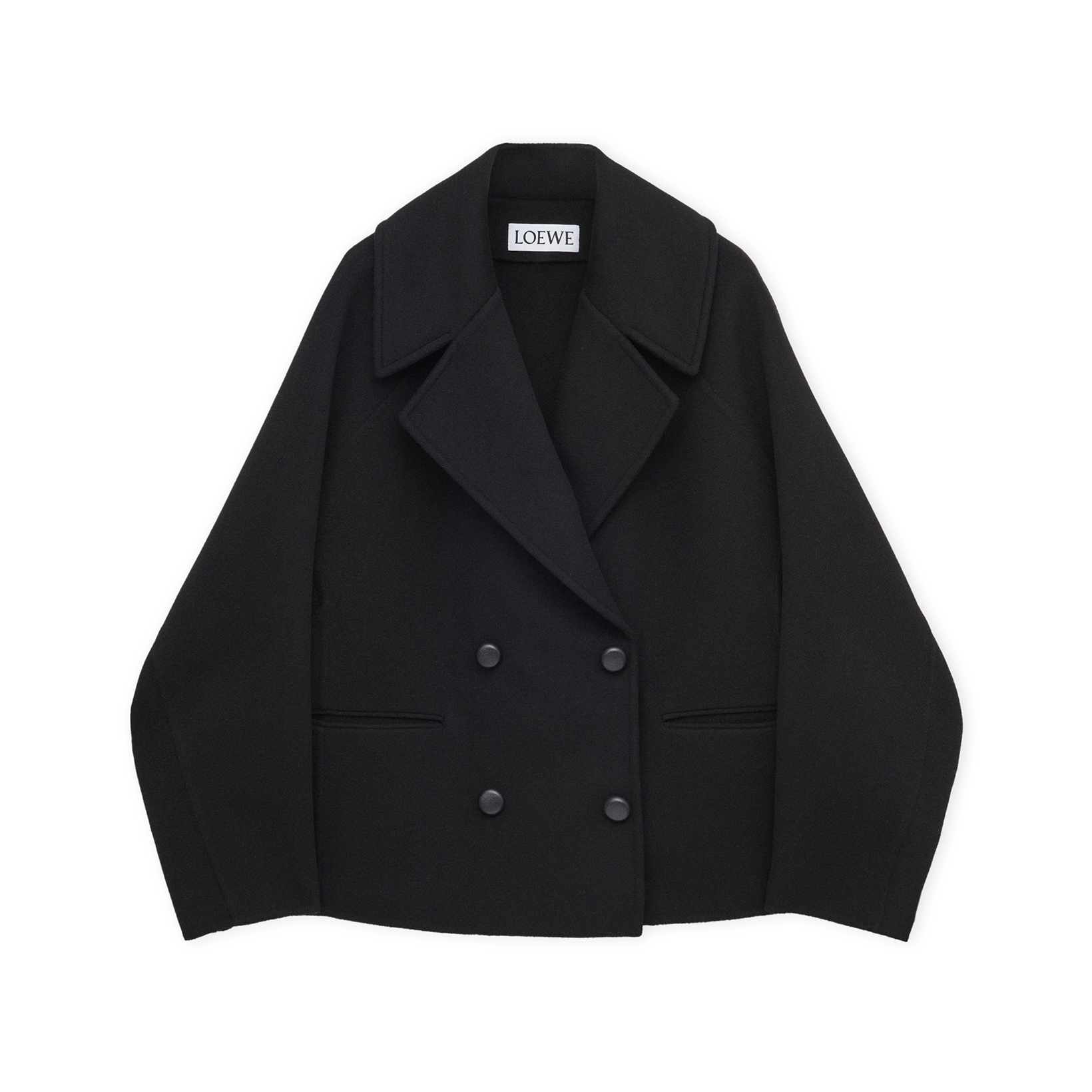 ロエベで毎年人気を集めるのがブラックのウールアウター。今年はほんのり目線が下がるボタン位置が新鮮なショートコートに注目。レザーのくるみボタンにはさりげなくアナグラムの刻印が。スエードトラウザーズやニット、パンプスでもカラーを効かせて今年らしいコーデに。