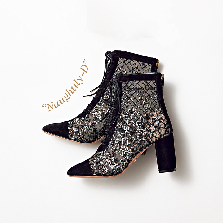 シアーなメッシュに細やかにあしらわれた草花モチーフや、煌めく〝J’Adior〟ロゴで華を添える一足。