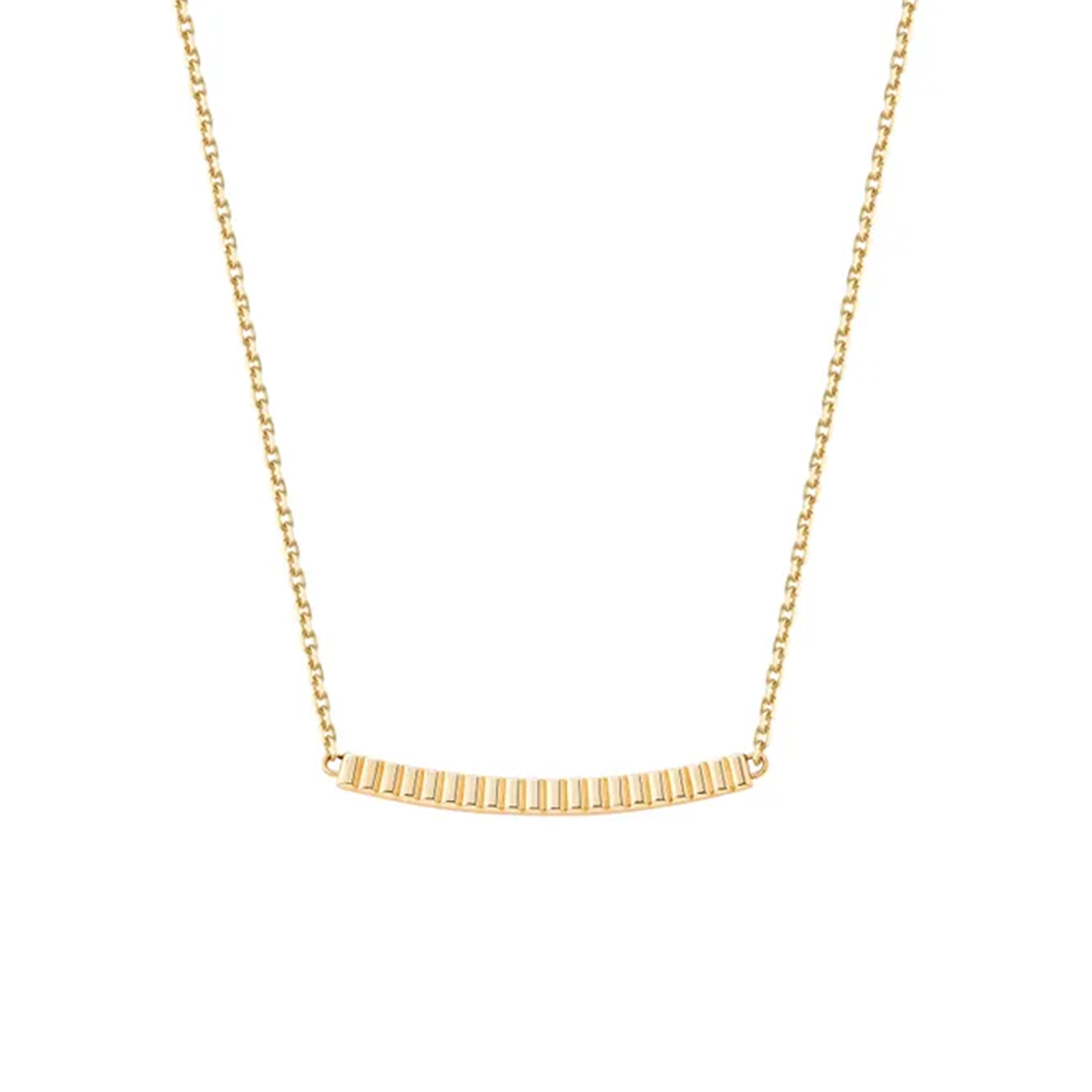 新作のタイネックレスは、4つのコードが並ぶスライディングモチーフの位置を調整することで、チョーカー風、ロングネックレス、バックワードネックレス、と自在にアレンジでき、可能性は無限大。