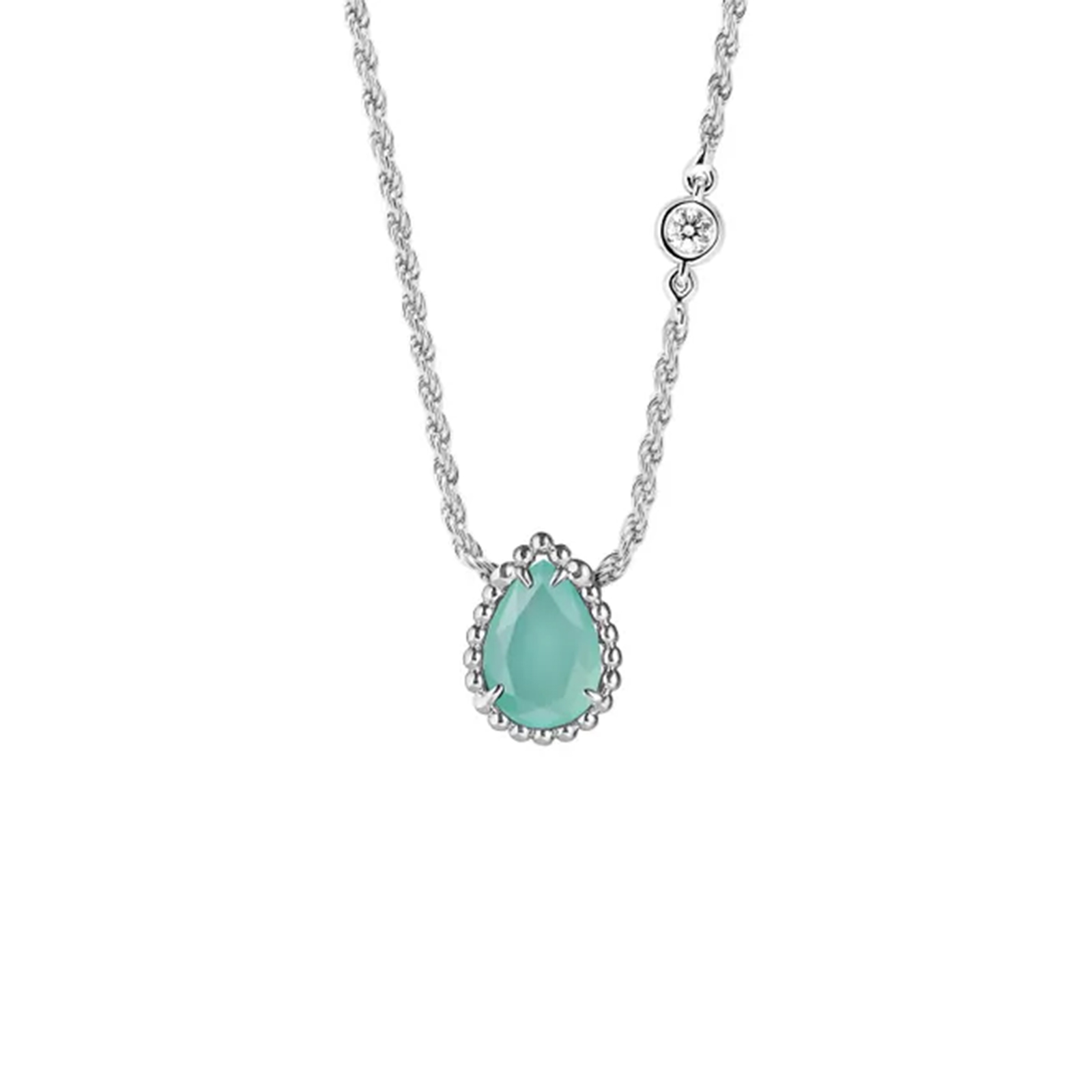 ダイヤモンド×アクアプレーズの繊細かつ優美な煌めき。あえてカジュアルな装いにMIXして、大人の余裕を。