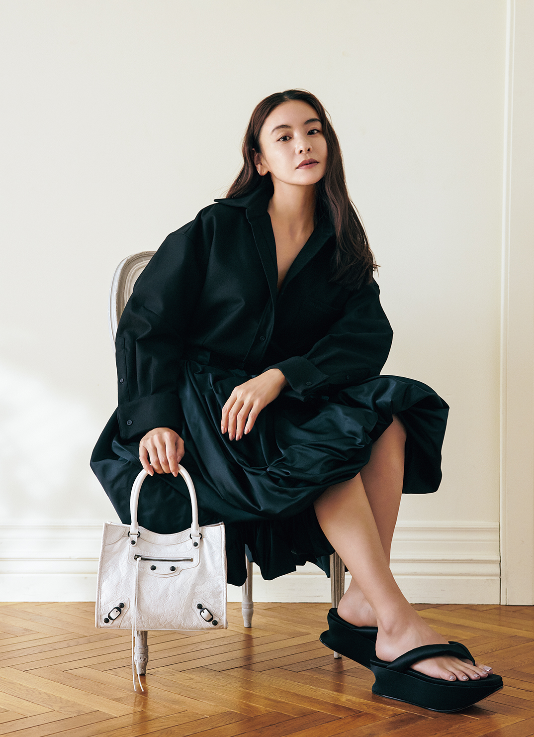バッグ「ル・シティ トート バッグ ミニ」[W26×H21×D8㎝][日本限定]〈取り外し可能なストラップ付き〉¥264,000シャツ¥217,800バルーンパンツ¥632,500サンダル¥159,500※すべて予定価格(すべてバレンシアガ/バレンシアガ クライアントサービス)