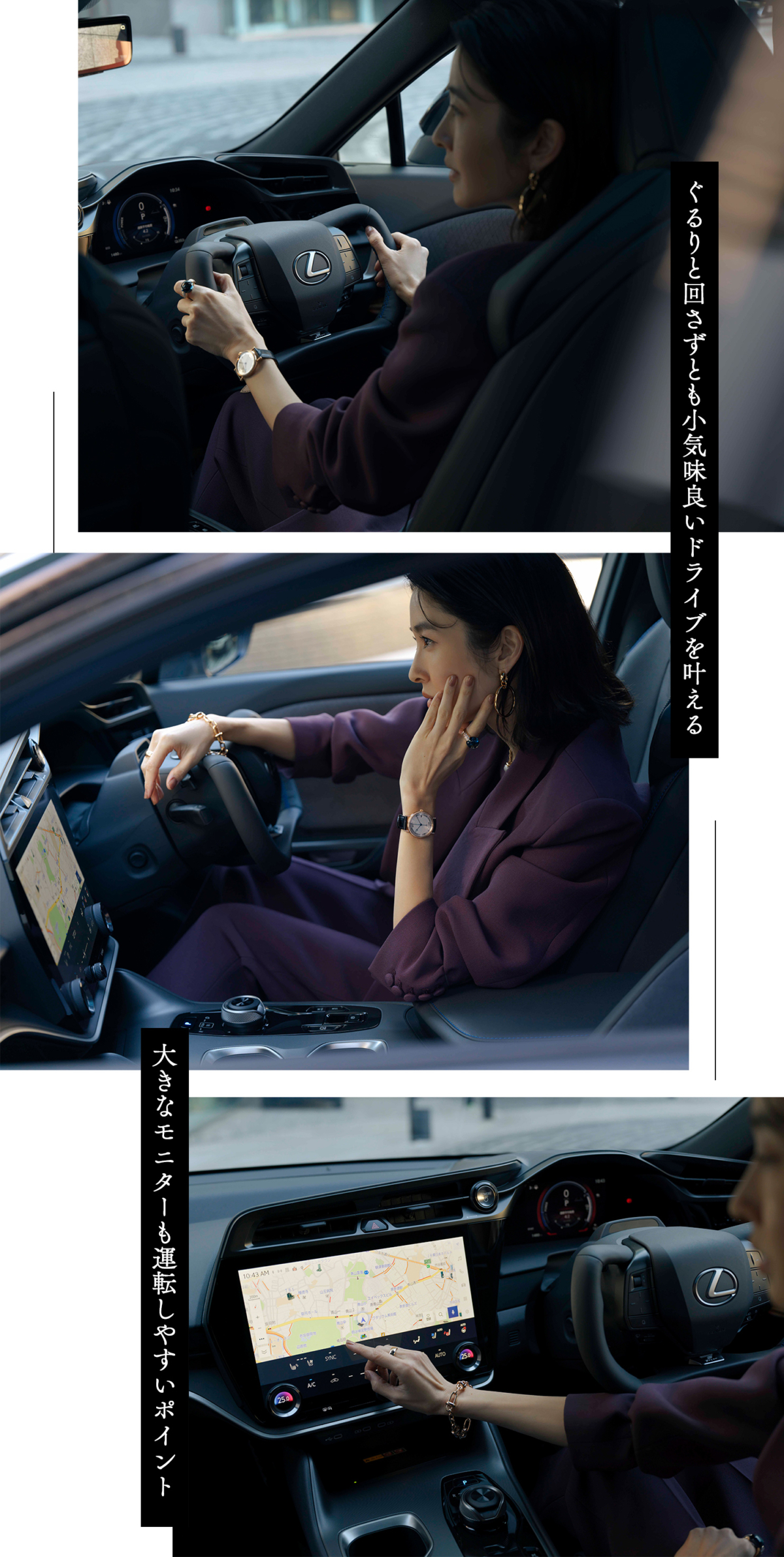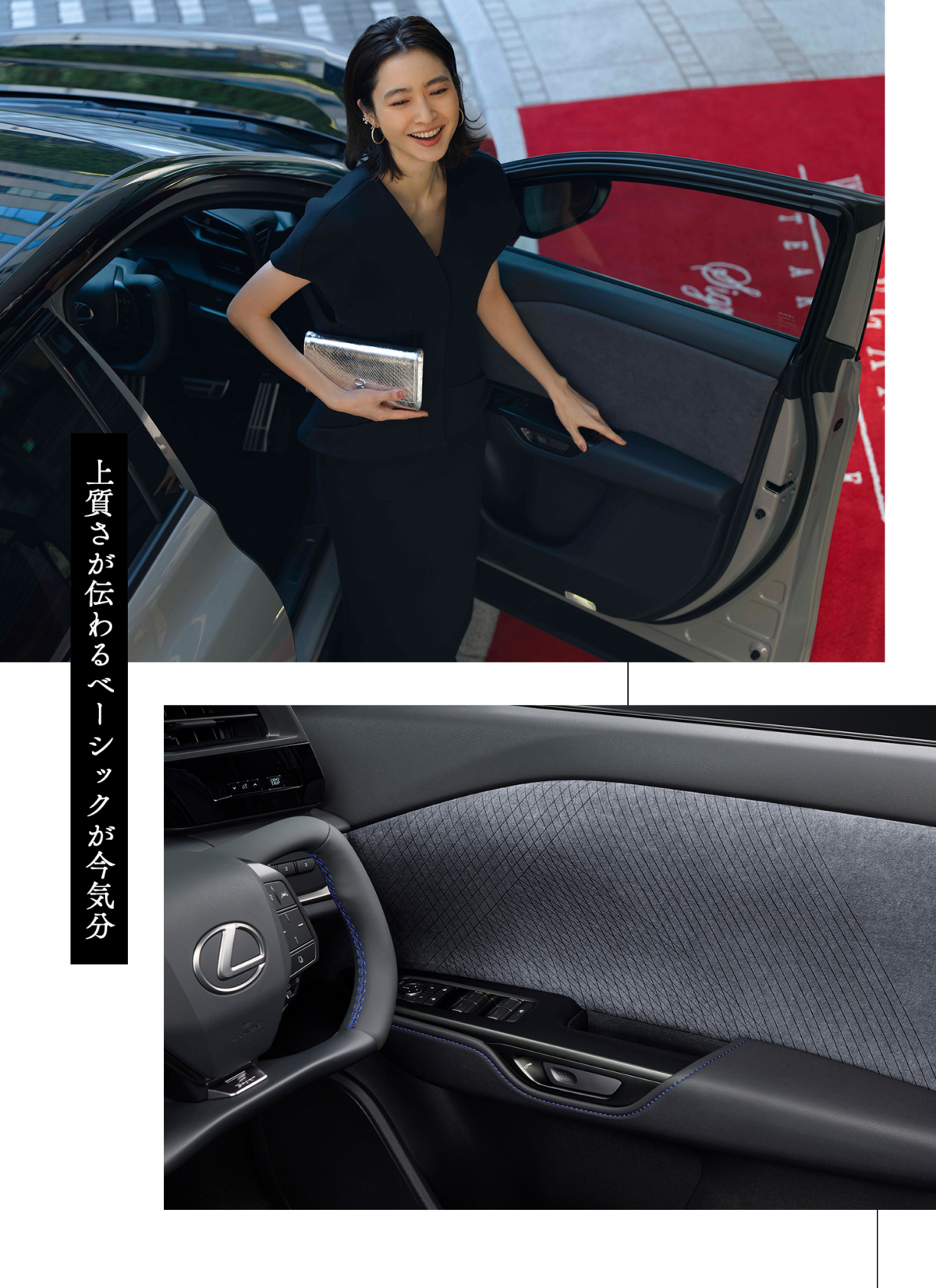 ミニマルで美しく機能的であることが、いかにむずかしいか。ファッションも、暮らしも、毎日乗る車も。その奥深さに触れることが楽しくなってきた世代。研ぎ澄まされたエクステリア、リュクスなインテリア、私と呼応する操作性。手にした人にしかわからない本質への満足感が、レクサス「RZ」にあります。