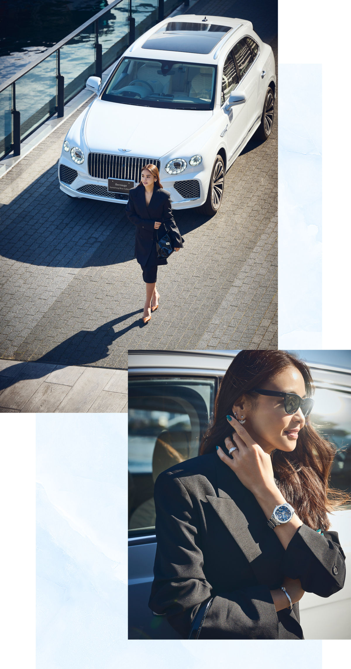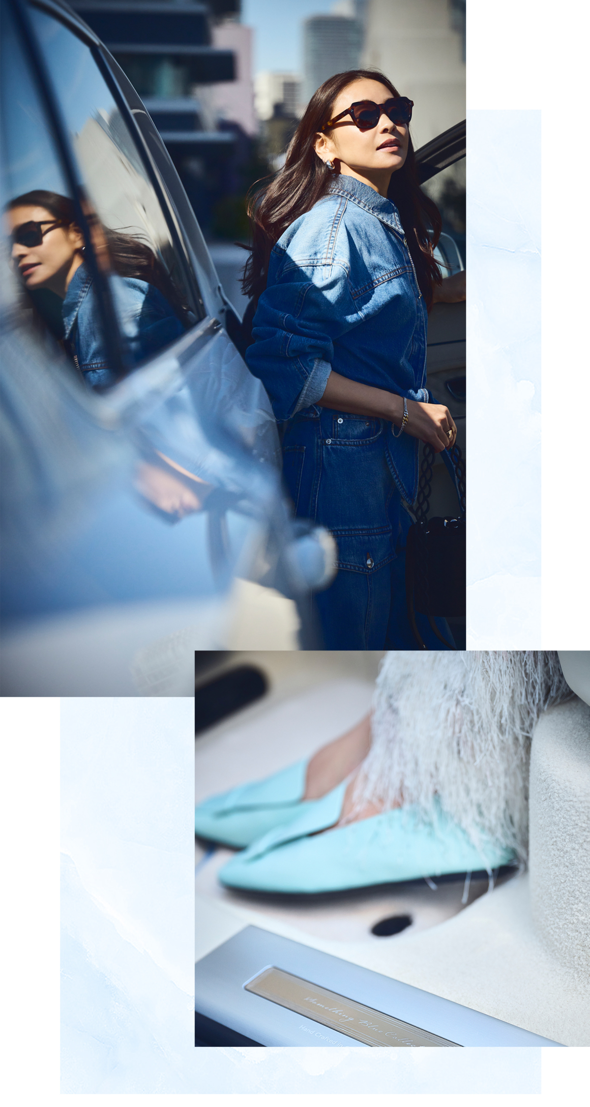 ブルーデニムやシューズ、バッグにブルーフェイスのウォッチやネイルまで……ドライブファッションにも“サムシングブルー”を取り入れて楽しみたい。