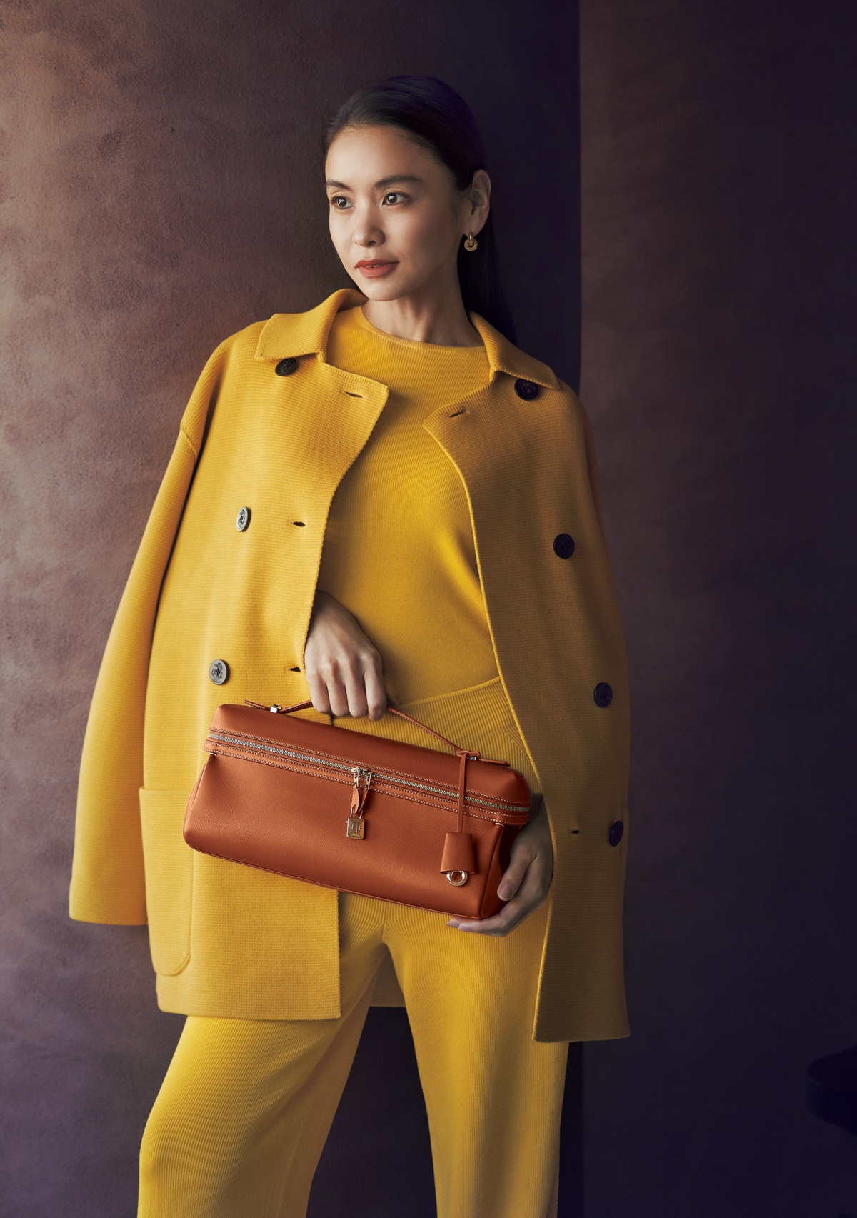 バッグ「エクストラ・ソフティ・バッグ」[H14×W33×D9㎝]¥728,200コート¥970,200セーター¥215,600パンツ¥503,800イヤリング¥149,600(すべてロロ・ピアーナ/ロロ・ピアーナ ジャパン)