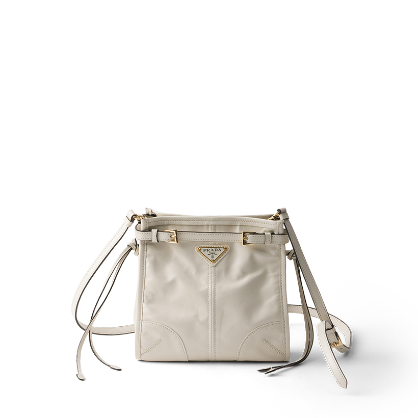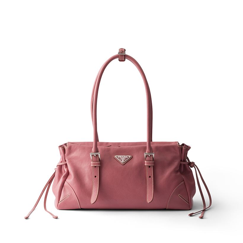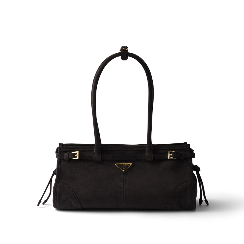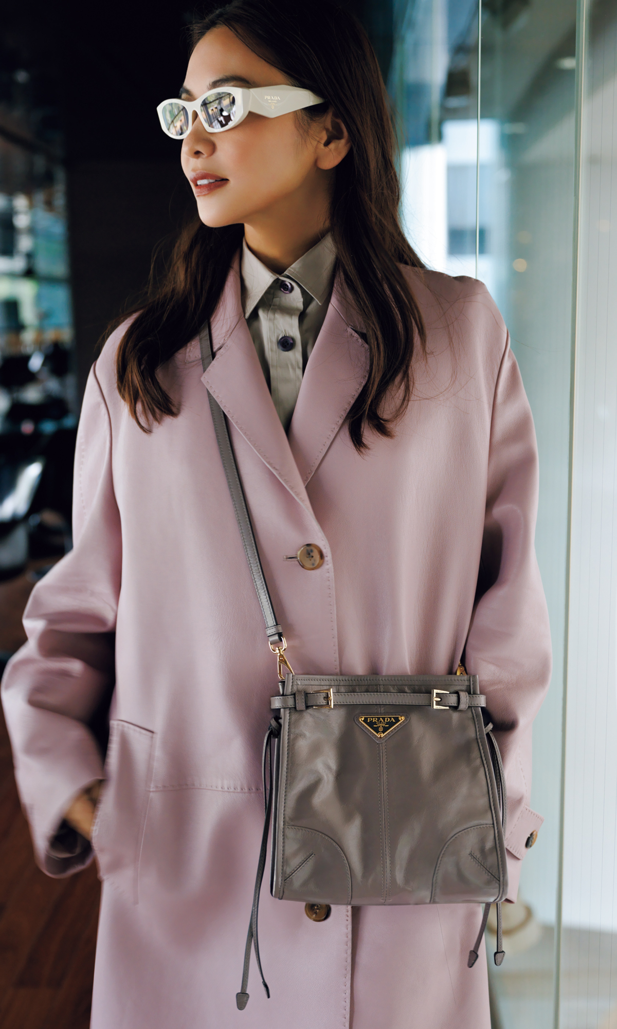 ハンドルバッグはもちろん、「プラダ ボニー」はショルダーバッグも秀逸。ショルダーストラップを外してクラッチ風に持つなど、気分に合わせてアレンジするのも大人的。PRADAらしいスエードや、ニュアンスカラーもおすすめです。