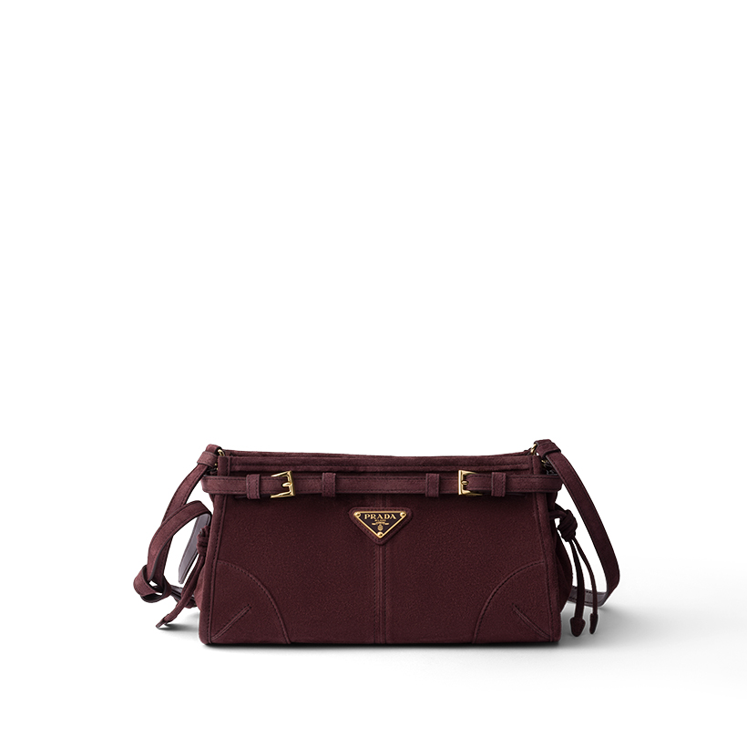 PRADAのスエードバッグFANも必見。今シーズンから「プラダ ボニー」に、ヌバックver. が仲間入り。スエードよりもスムースな質感で、コーデにクールに寄り添うのがいいところ。季節を問わず活躍する、スタメンバッグの予感!